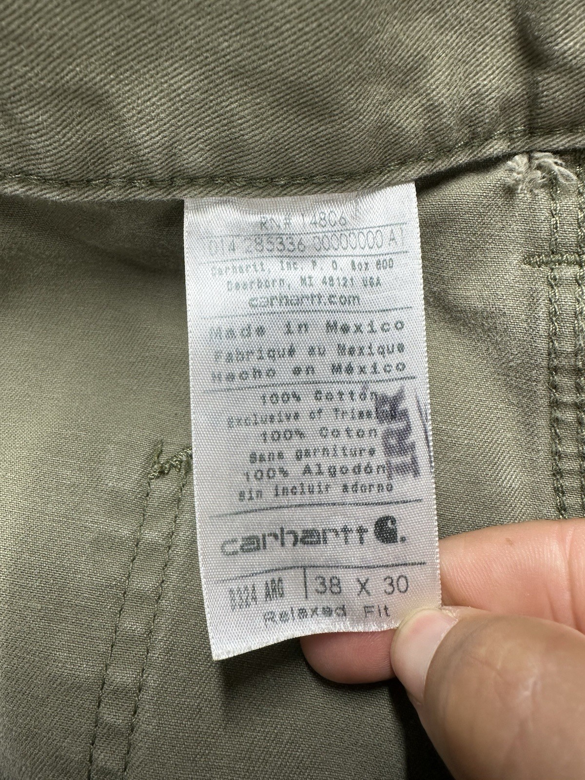 как выглядит Carhartt B324 ARG Work Pants 38x30 Relaxed Fit Utility Green Canvas Irregular фото