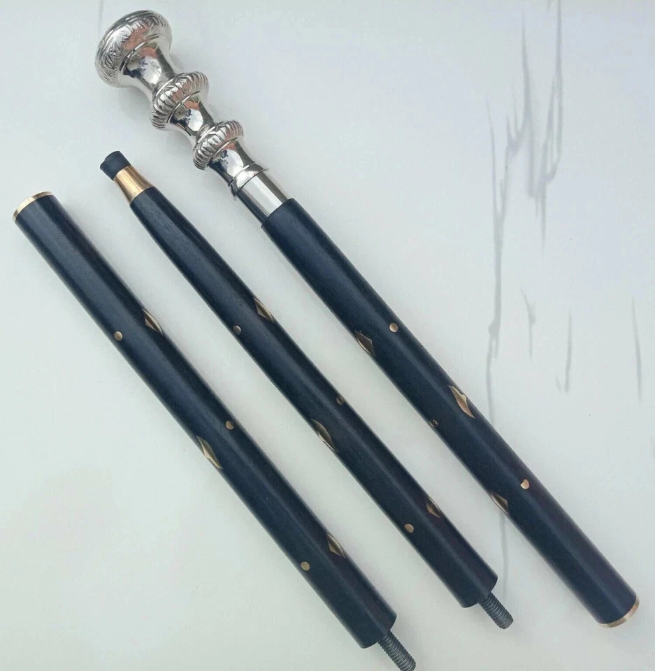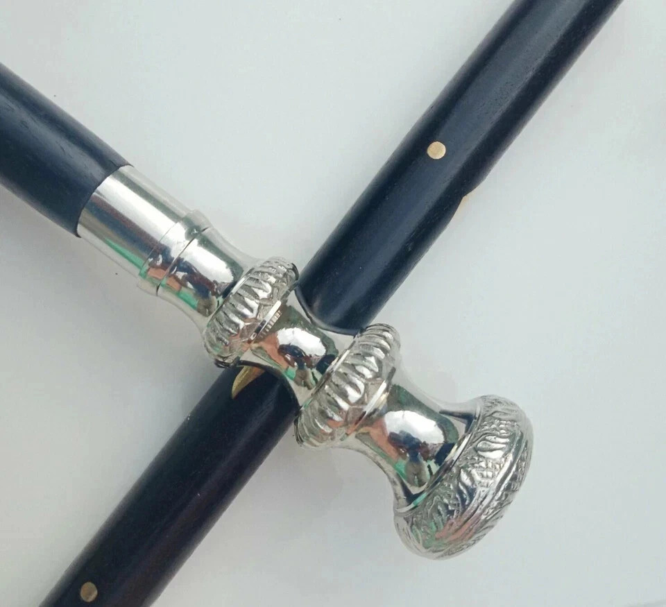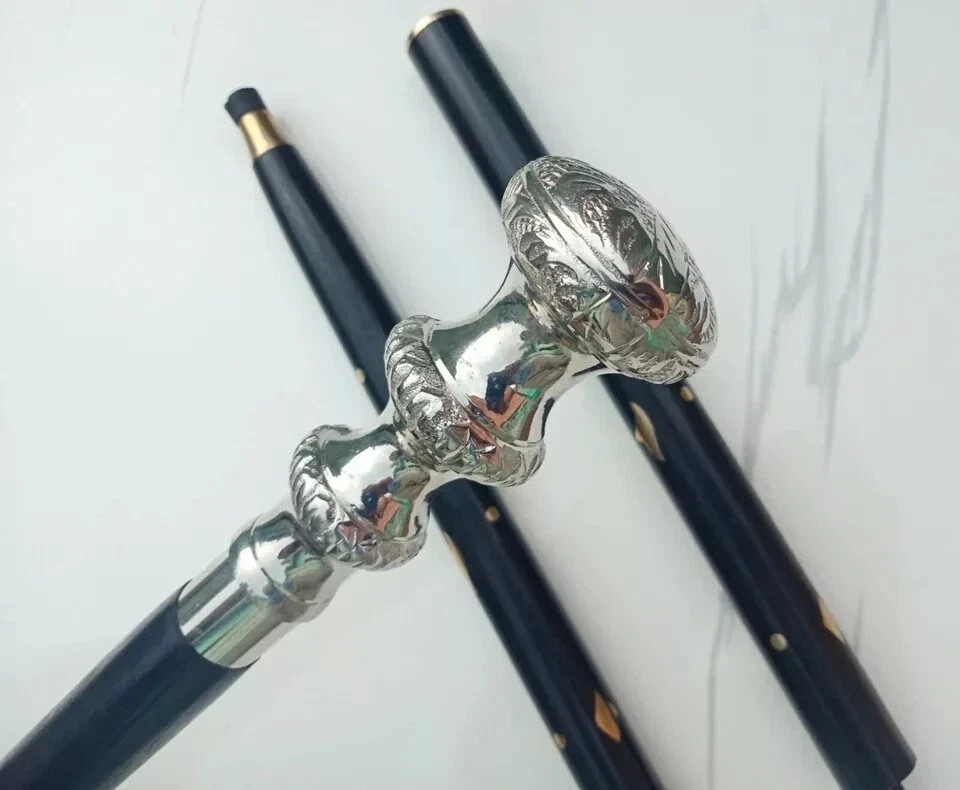 Antique Wooden Walking Stick Cane Silver Brass Design Handle Vintage Handmade