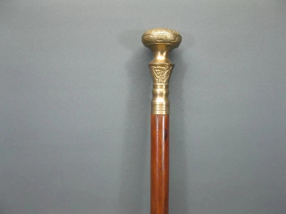 как выглядит NEW SOLID ANTIQUE VINTAGE SOLID BRASS HANDLE WOODEN WALKING STICK CANE DESIGNER фото