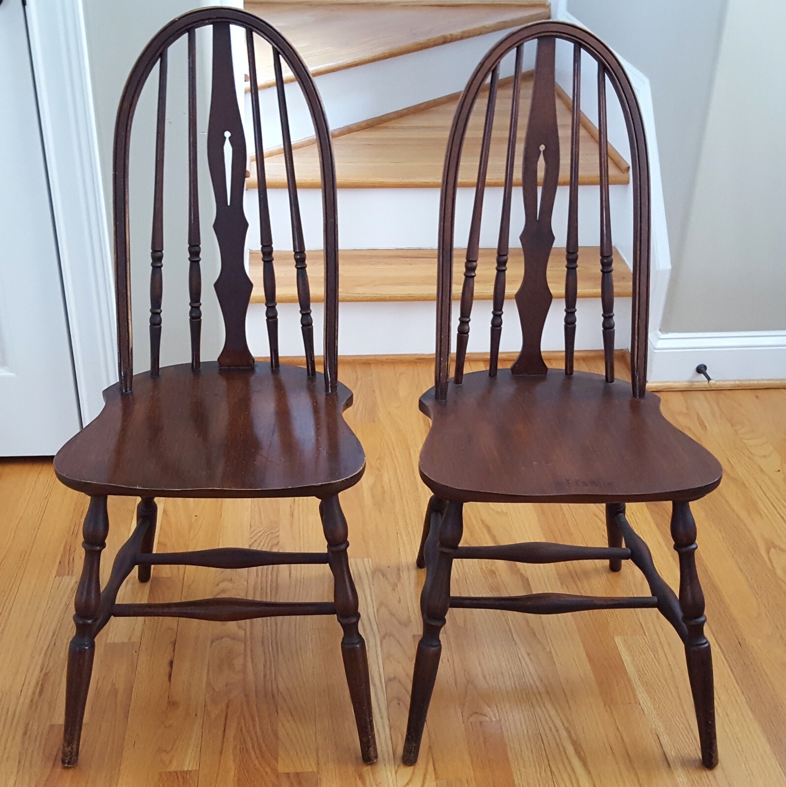 • Vintage Pair Windsor Chairs Nice Size Style Mahogany 1930s-1950s Unmarked
