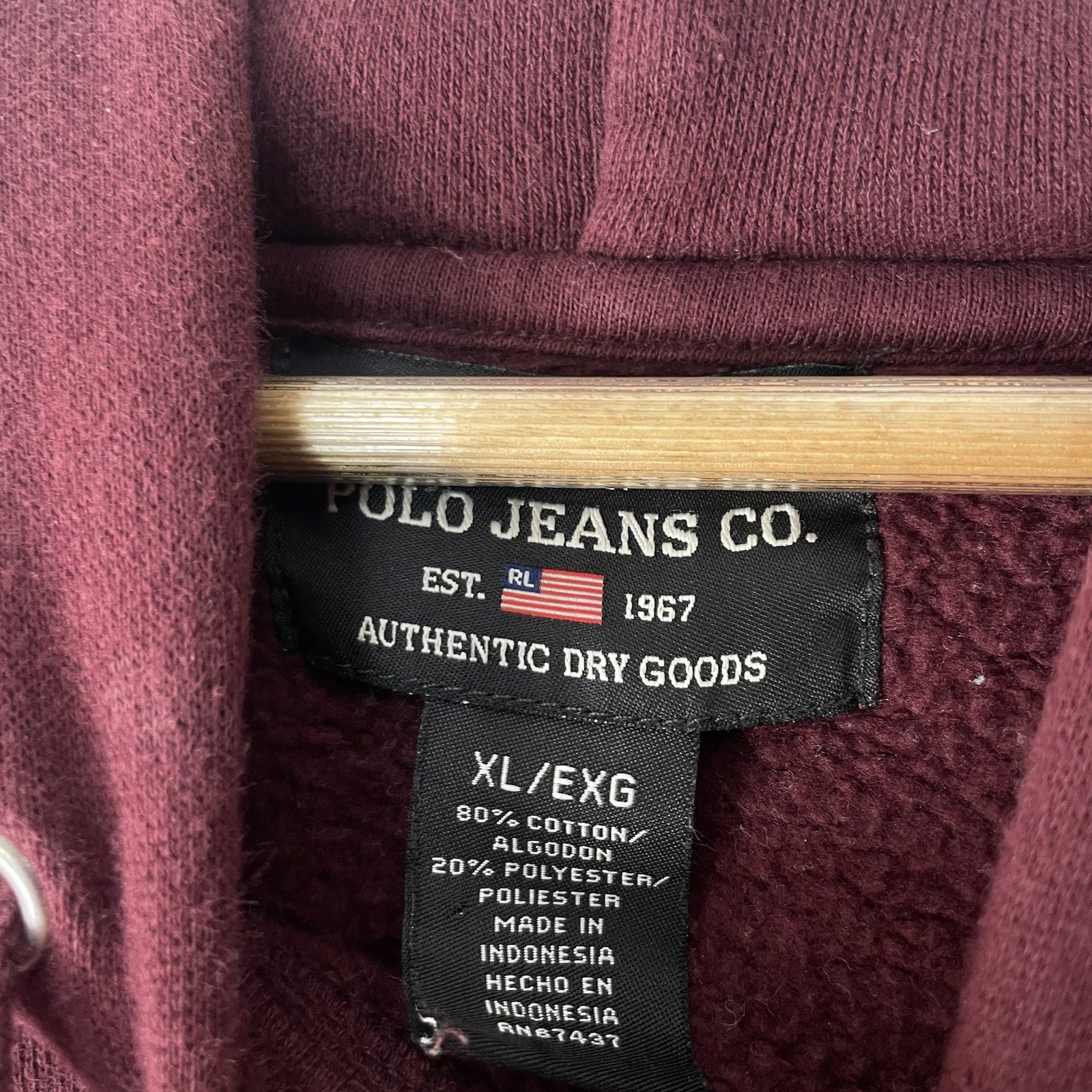Vintage Ralph Lauren Polo Jeans RL Embroidered Hoodie Mens XL Maroon White