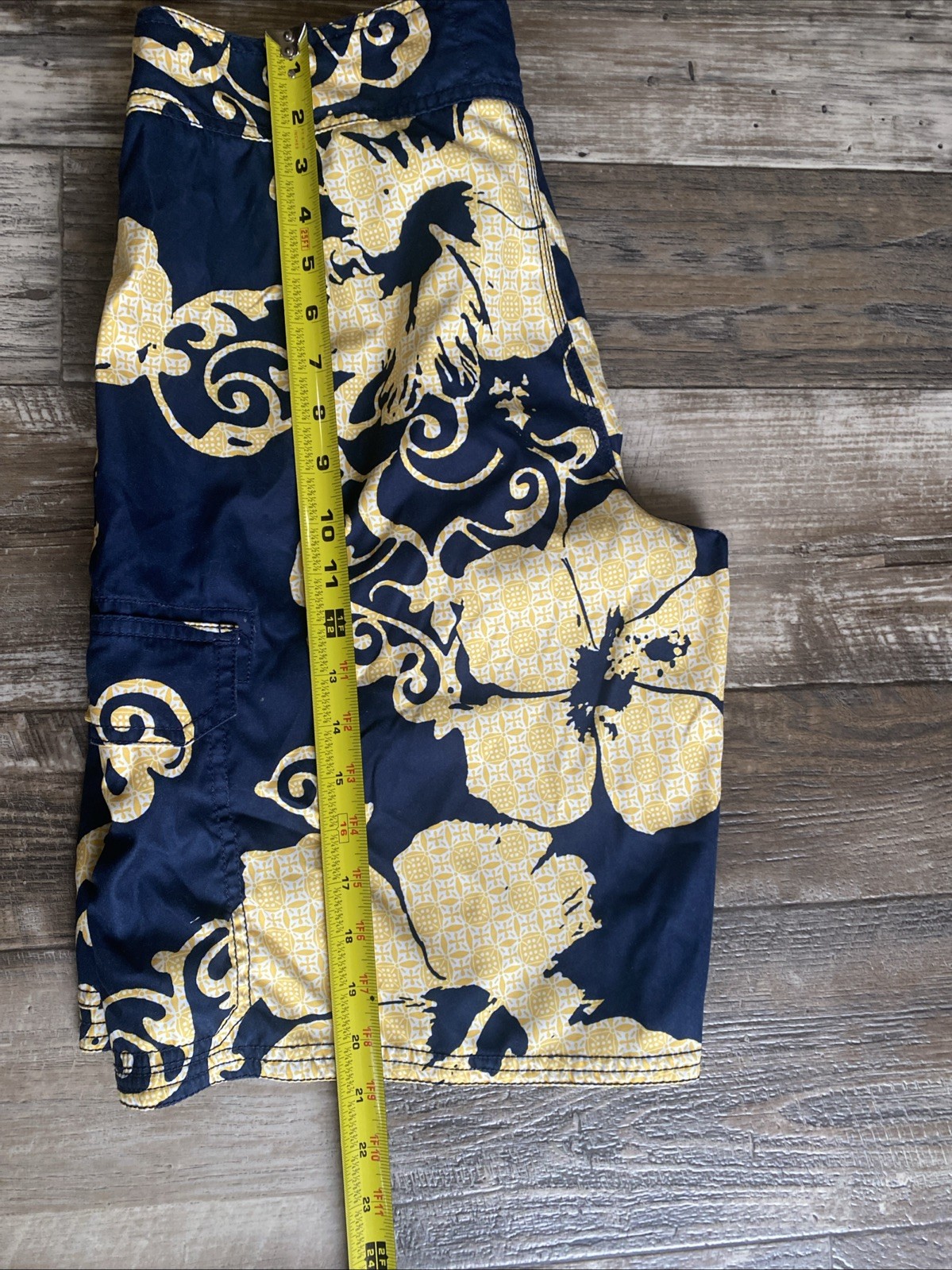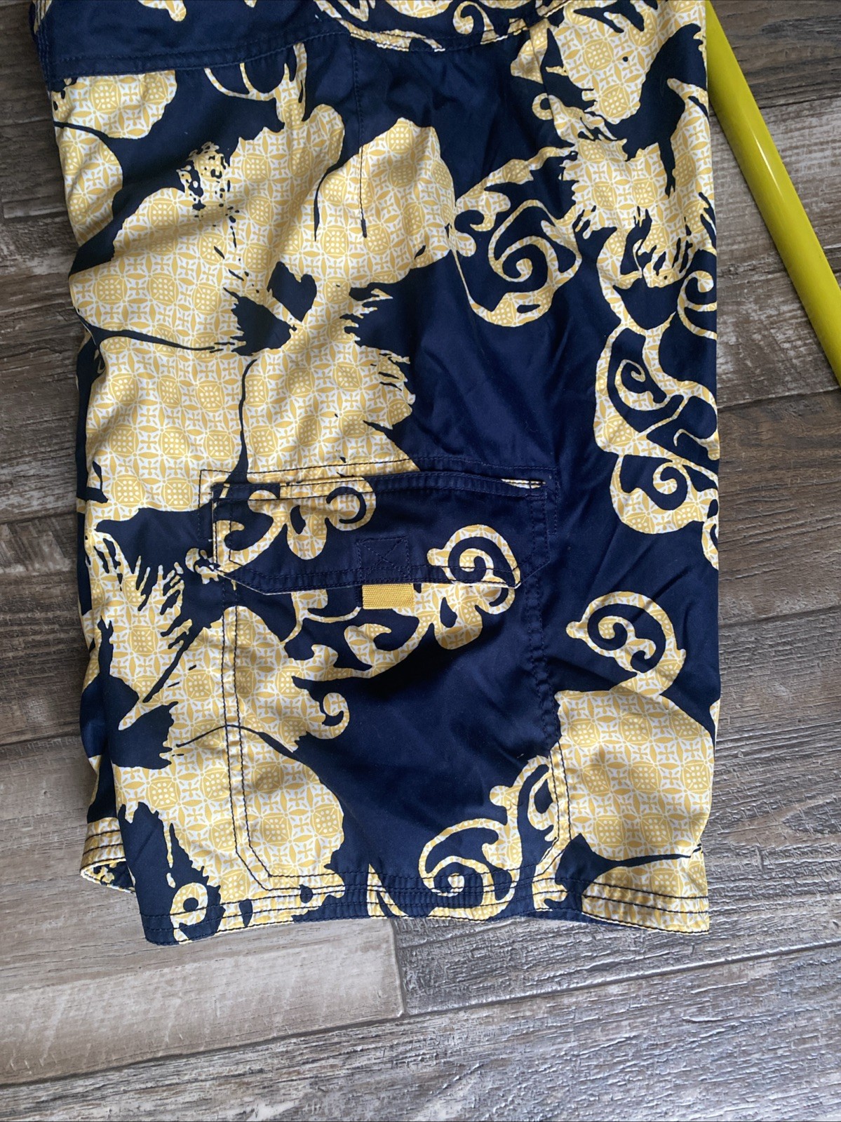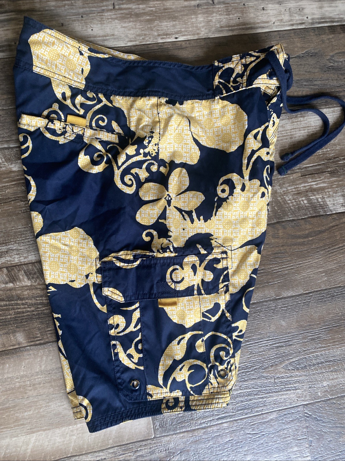 как выглядит Old Navy Swim Trunks Mens S Yellow Blue Board Shorts Pockets Beach Surf Floral фото