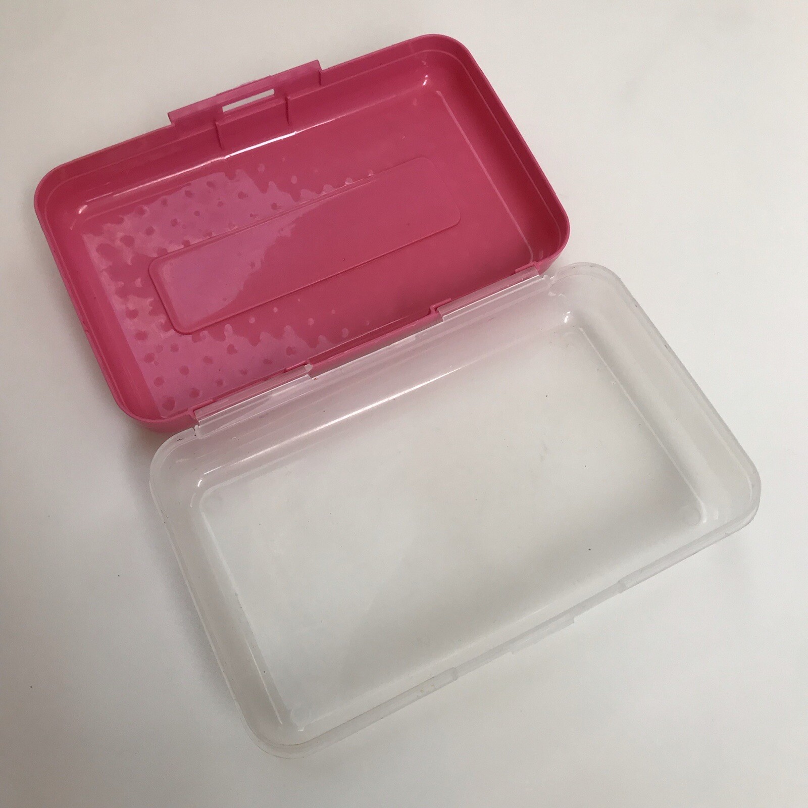 как выглядит SPACEMAKER Pink Dot Pencil Box Plastic Storage Case Vintage 90s фото