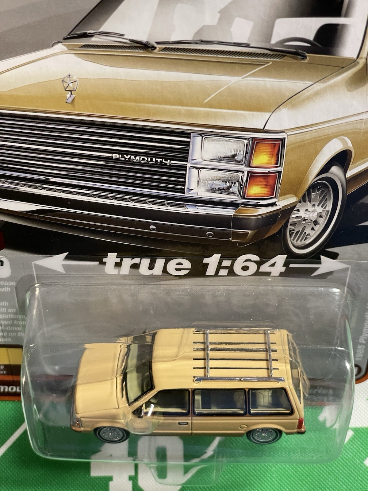 как выглядит Auto World Mighty Minivans Series 2 Version B 1985 Plymouth Voyager -1:64- фото