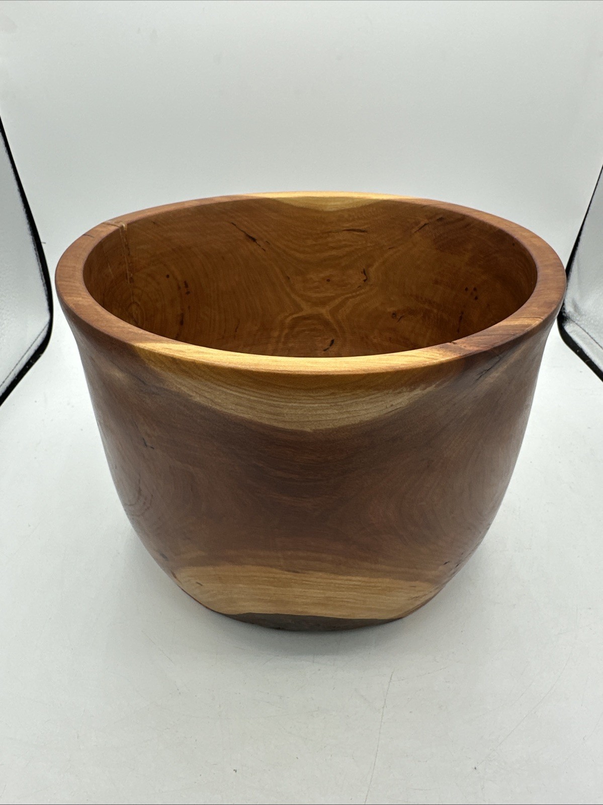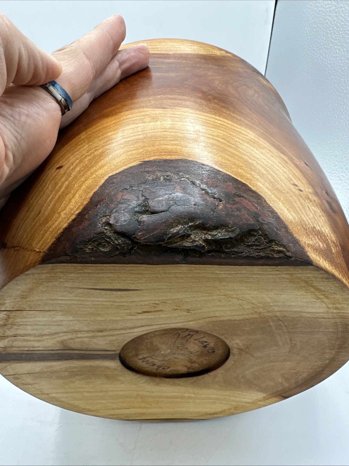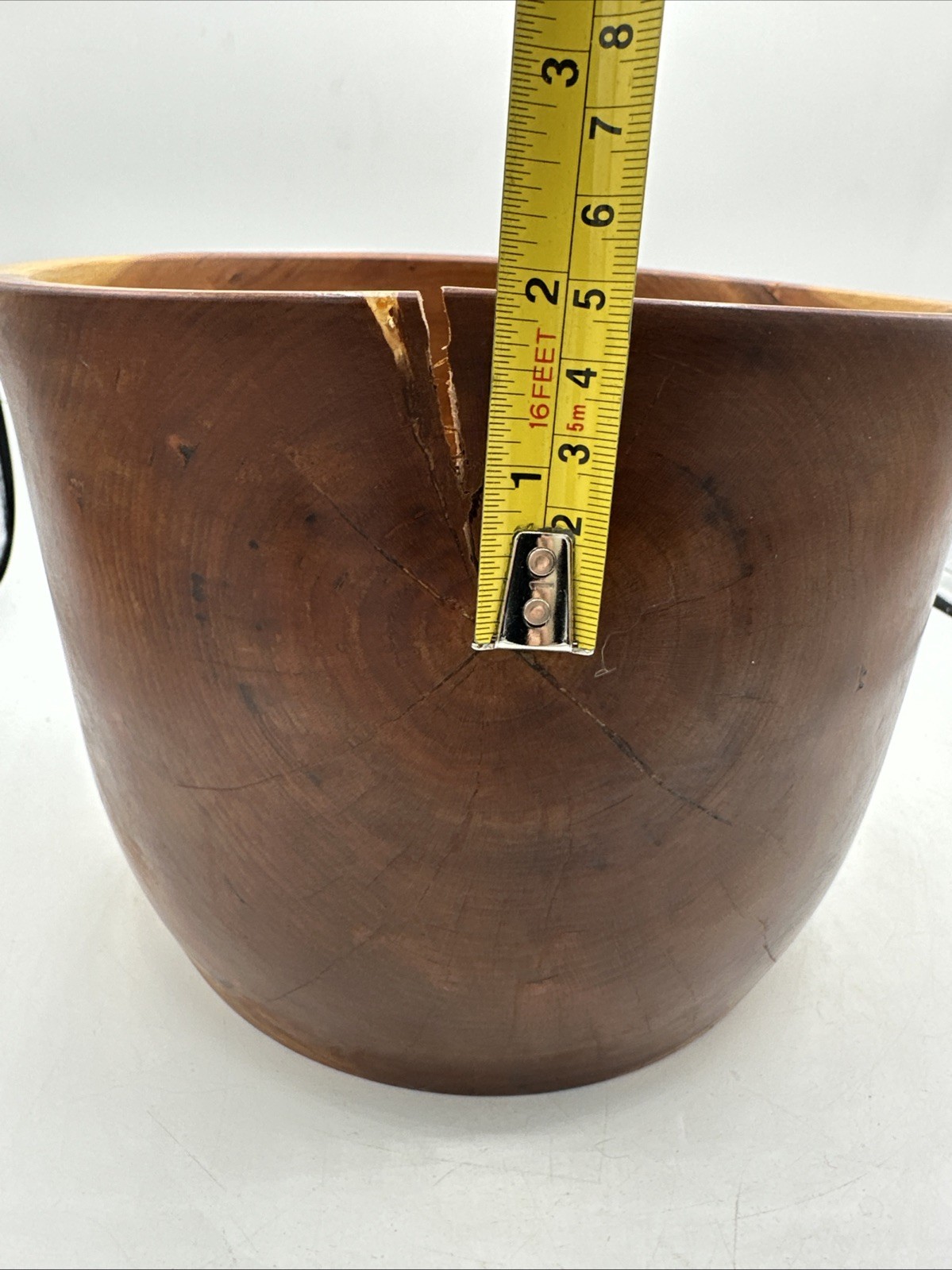 Large Wood Bowl Pot With Lid Hand Made Turned Wooden Cherry Farmhouse Country