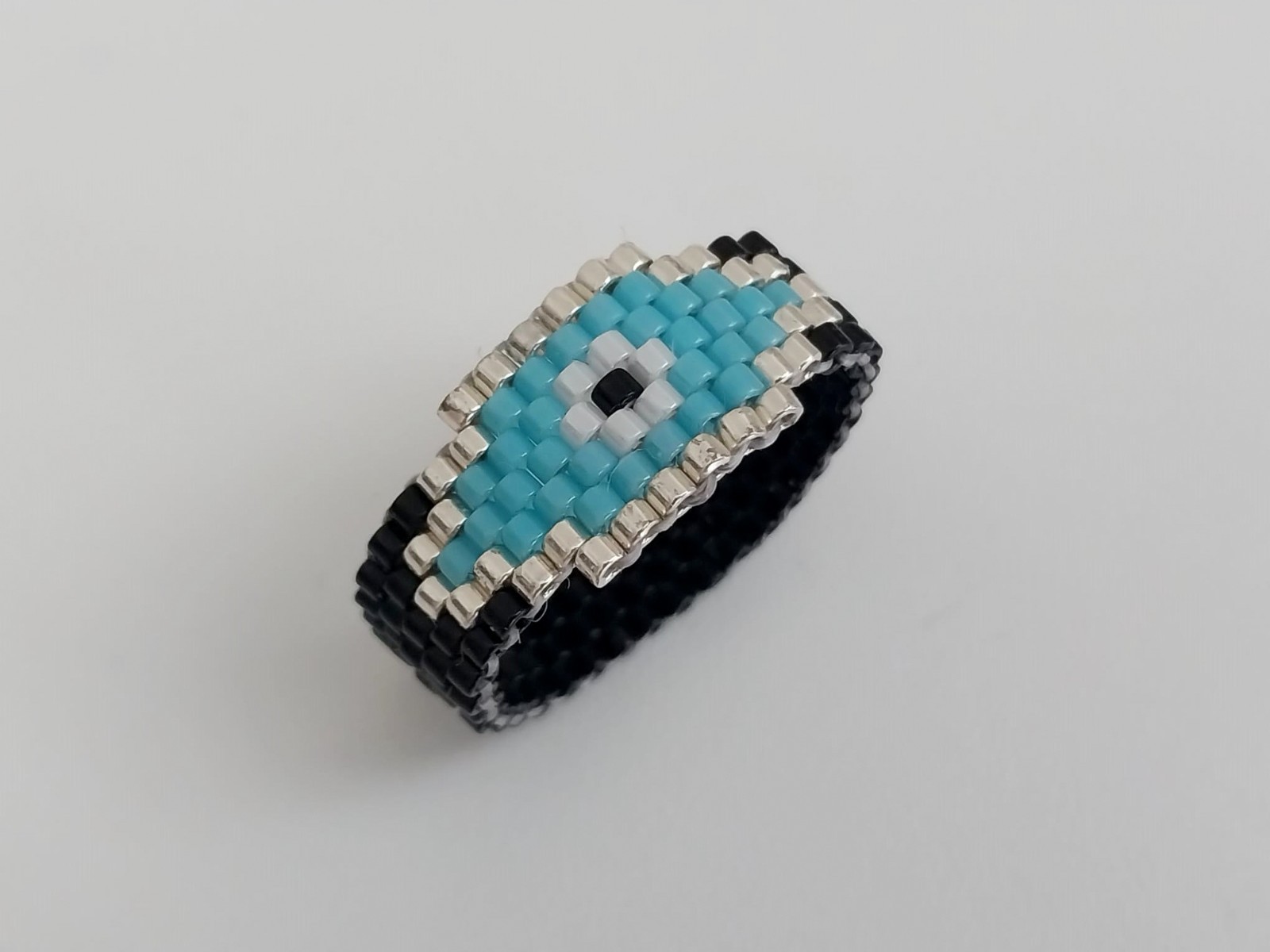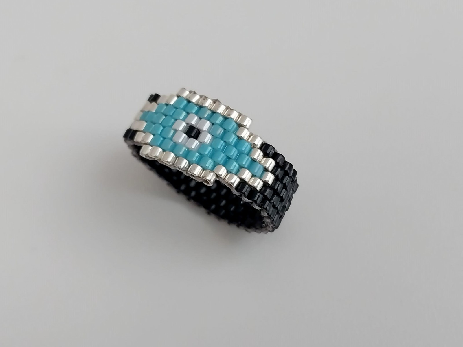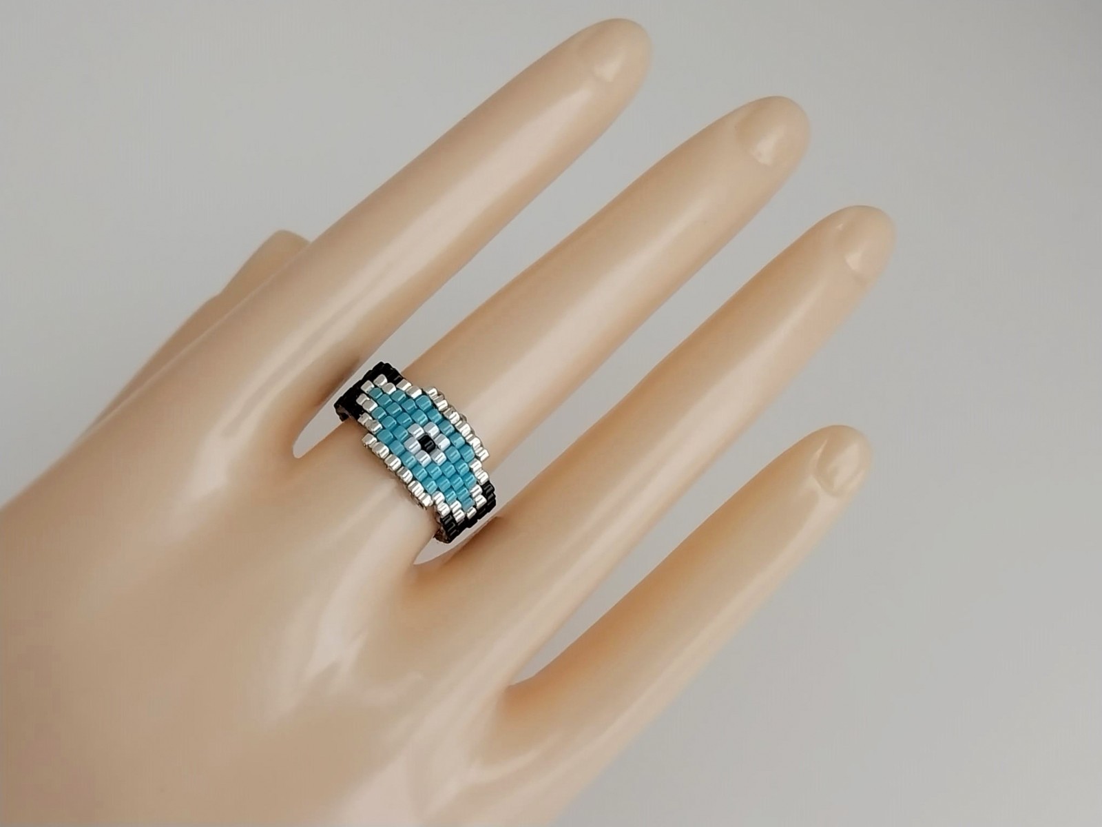 Beaded Evil Eye Peyote Ring / Seed Bead Jewelry