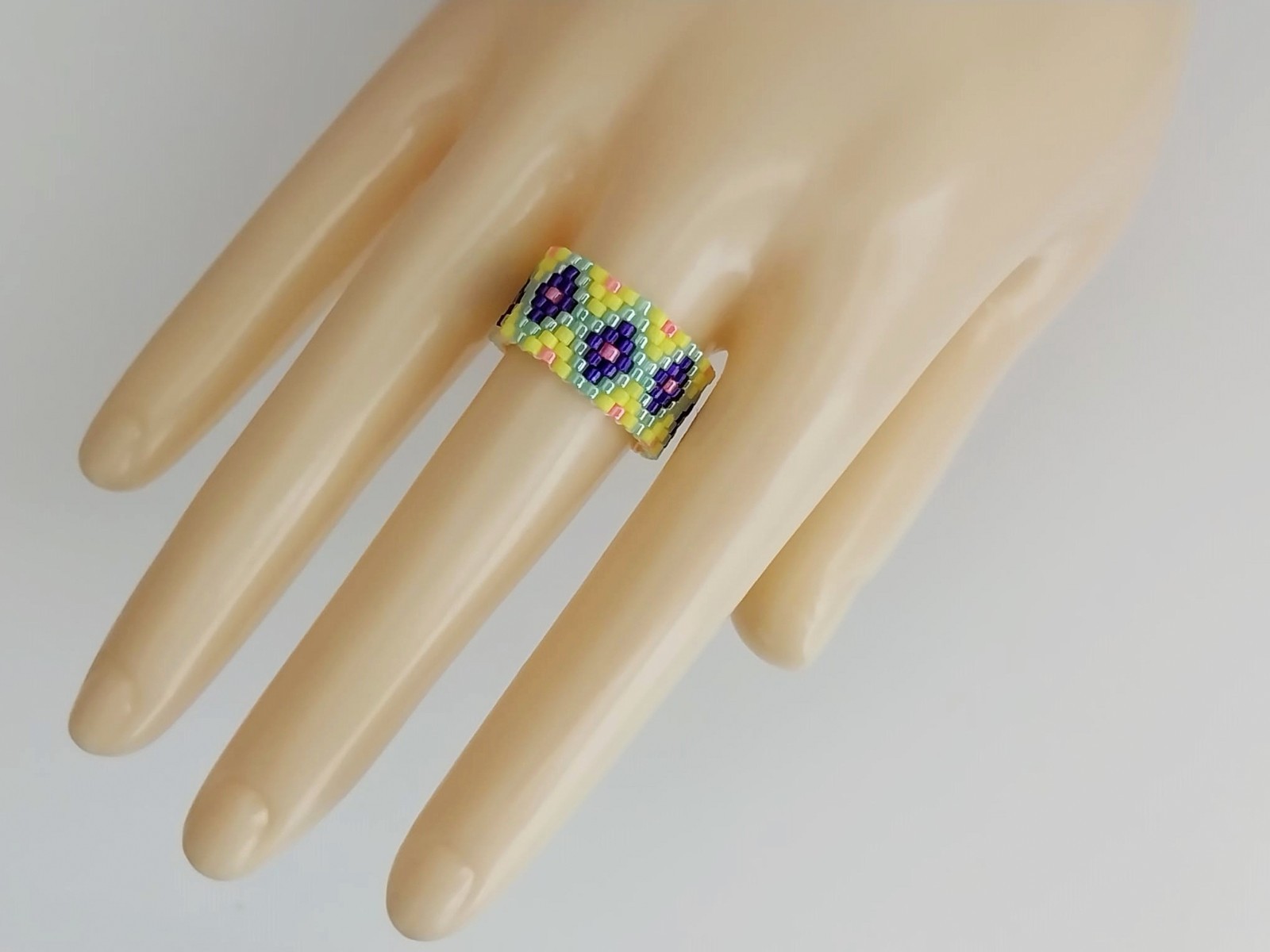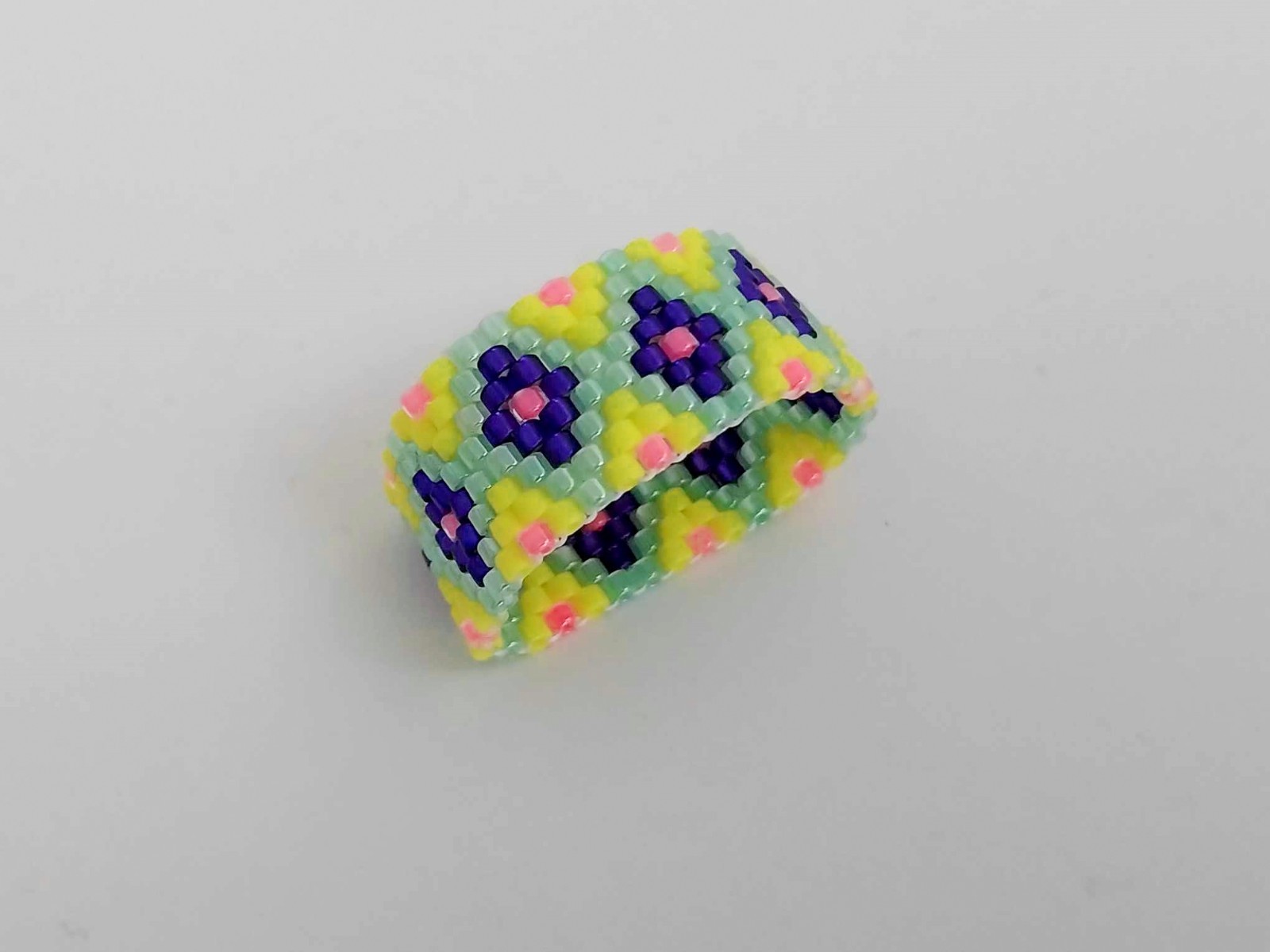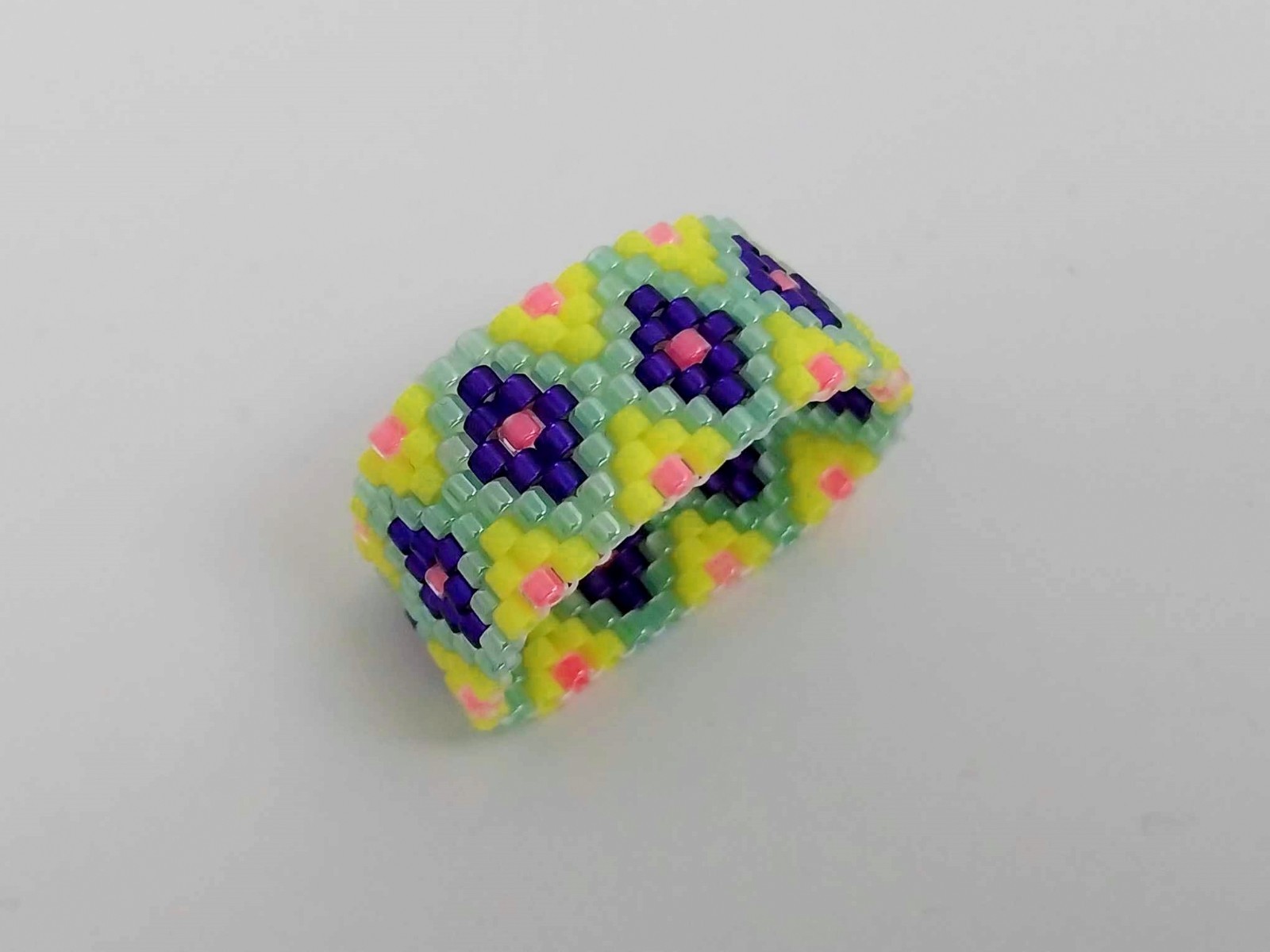 Beaded Peyote Ring / Multicolor Seed Bead Jewelry / Size 8 Ring