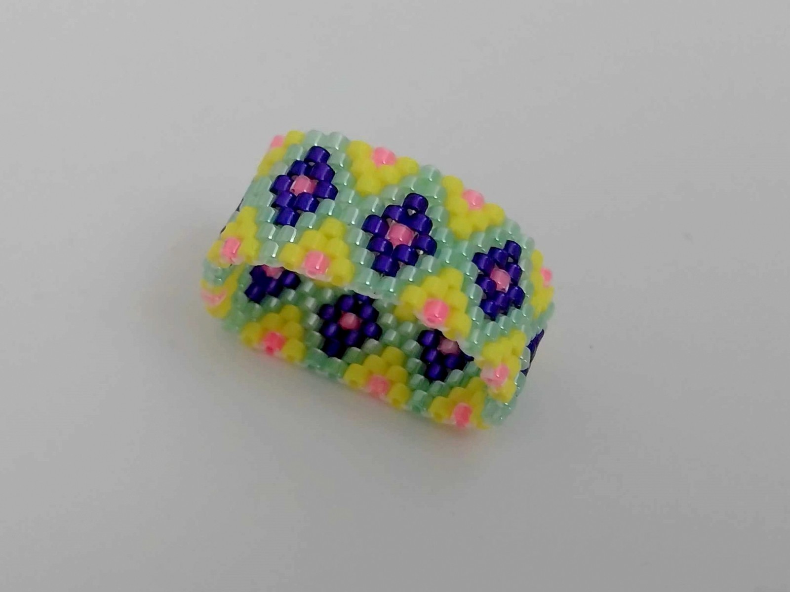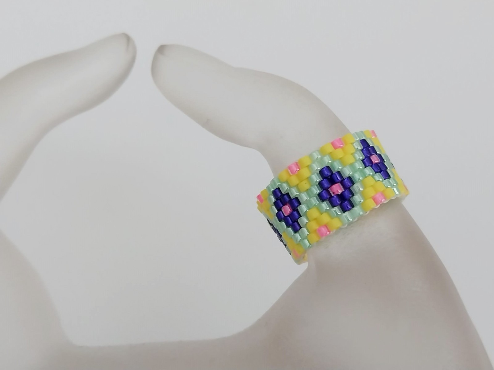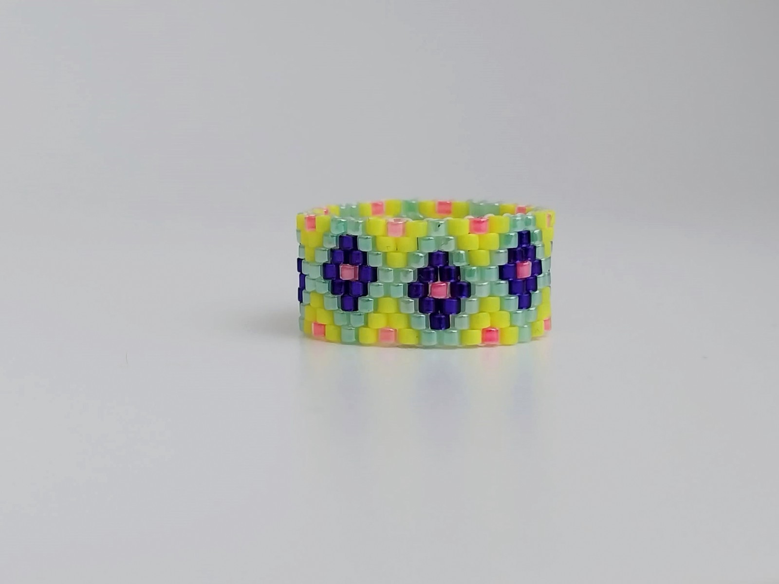 Beaded Peyote Ring / Multicolor Seed Bead Jewelry / Size 8 Ring