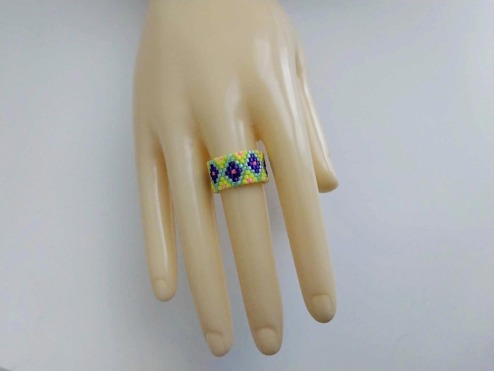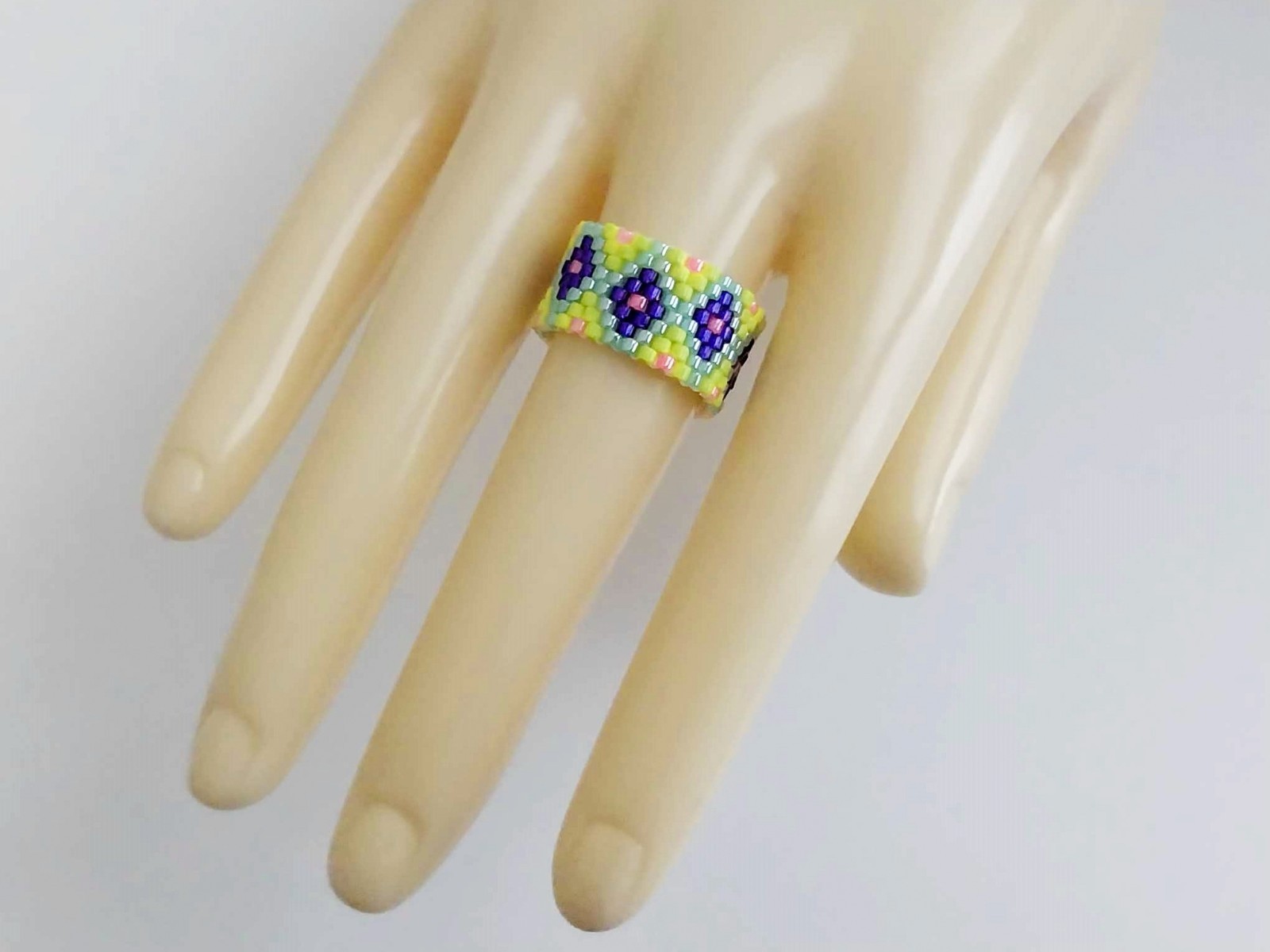 как выглядит Beaded Peyote Ring / Multicolor Seed Bead Jewelry / Size 8 Ring фото