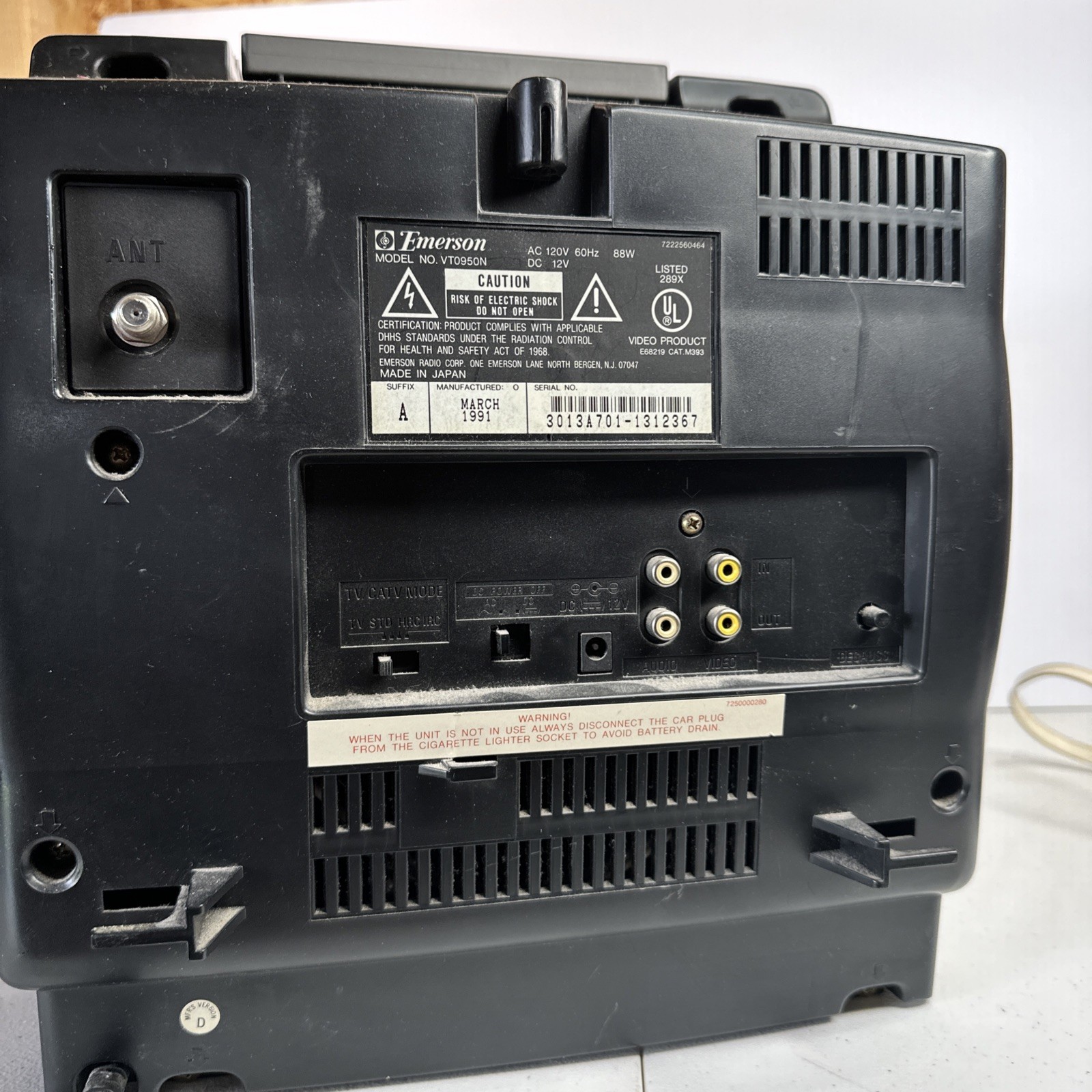 Vtg 1991 Emerson 10 Color Television VCR/VHS Player VT0950N TV works only
