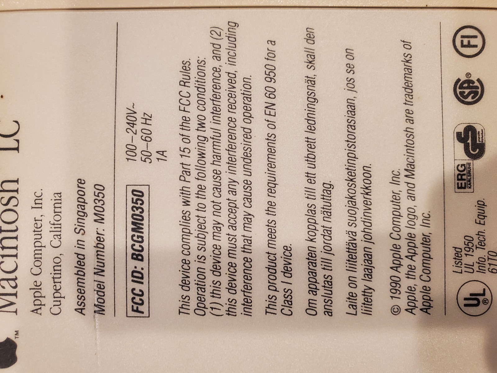 Vintage 1990 Apple Macintosh LC M0350 Computer Untested