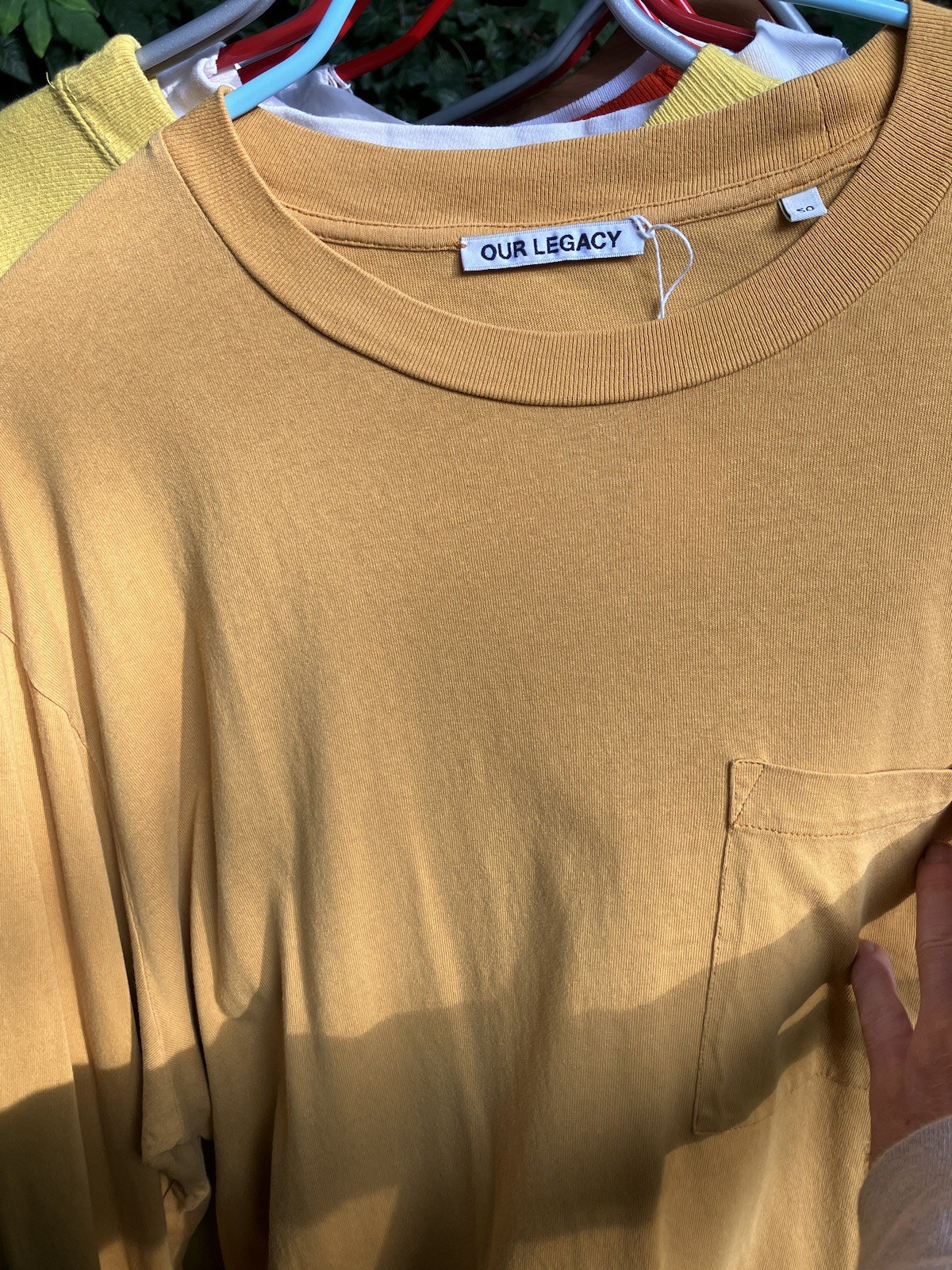 как выглядит Our Legacy sz 50 Pigment Dyed Box Longsleeve Pocket TShirt Gold Yellow Portugal фото