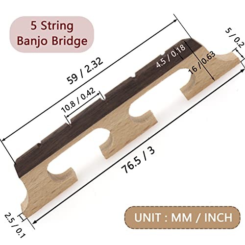 5-String Banjo Bridge, 2-Pack Ebony Maple Banjolele Bridges, Universal 5 string