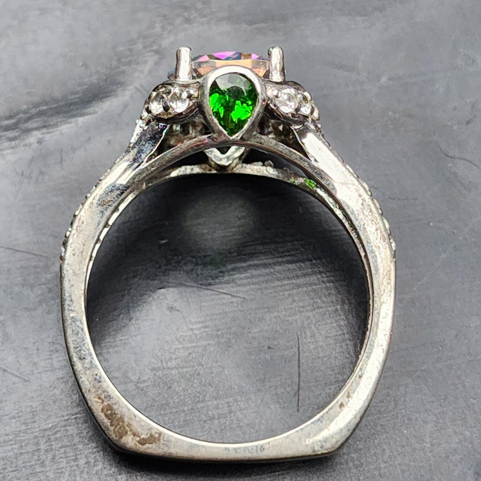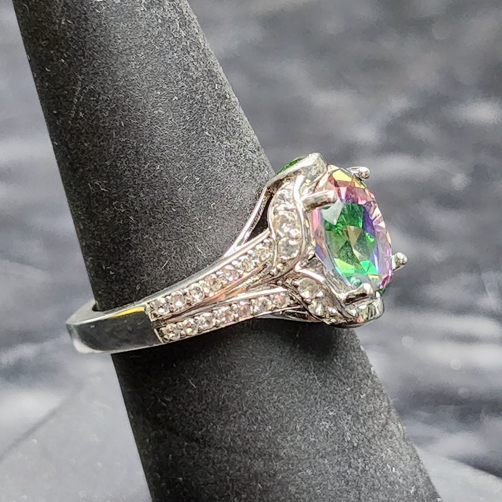 Mystic Topaz Ring Sz 8 Sterling Silver 925 Oval Rainbow Statement Pave