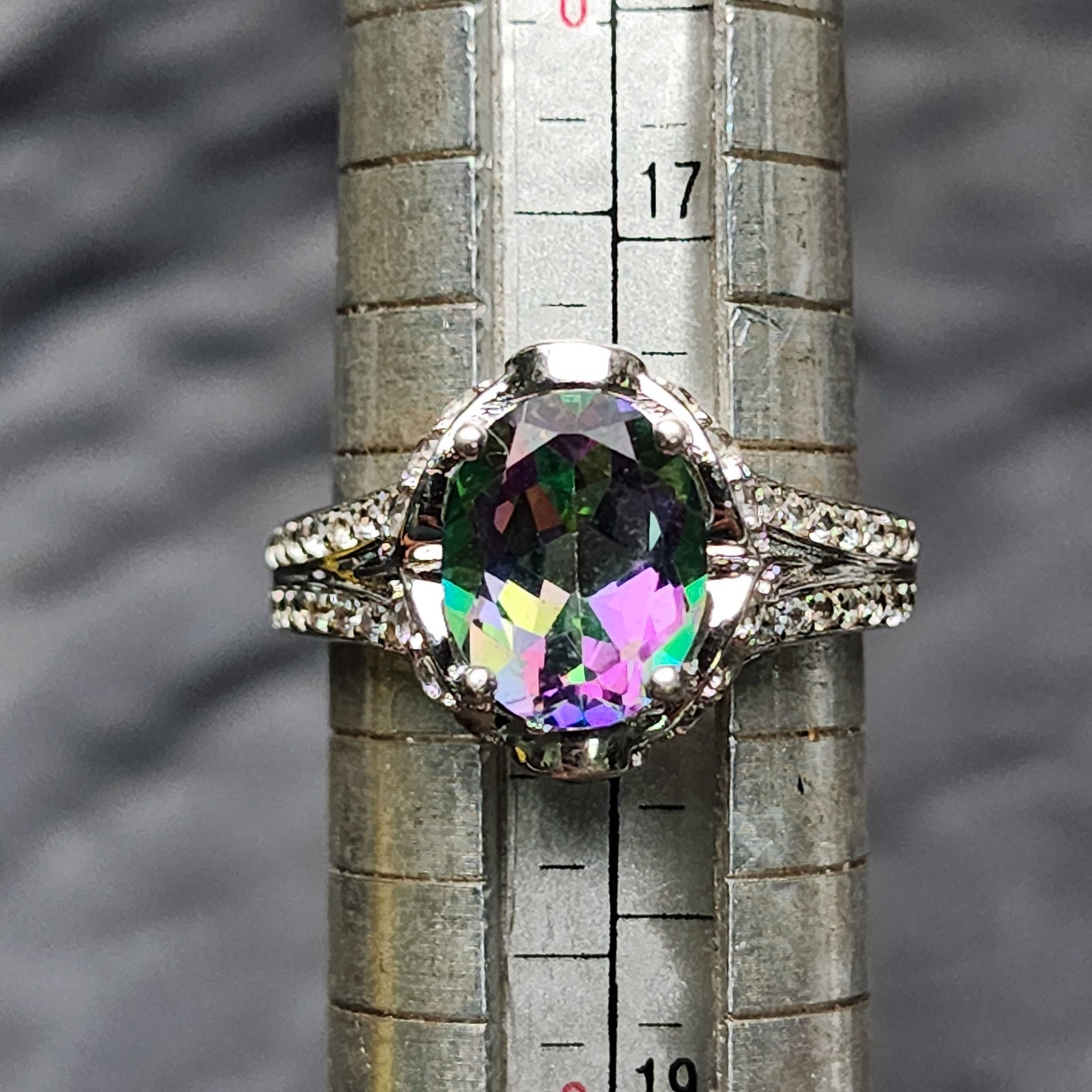 как выглядит Mystic Topaz Ring Sz 8 Sterling Silver 925 Oval Rainbow Statement Pave фото