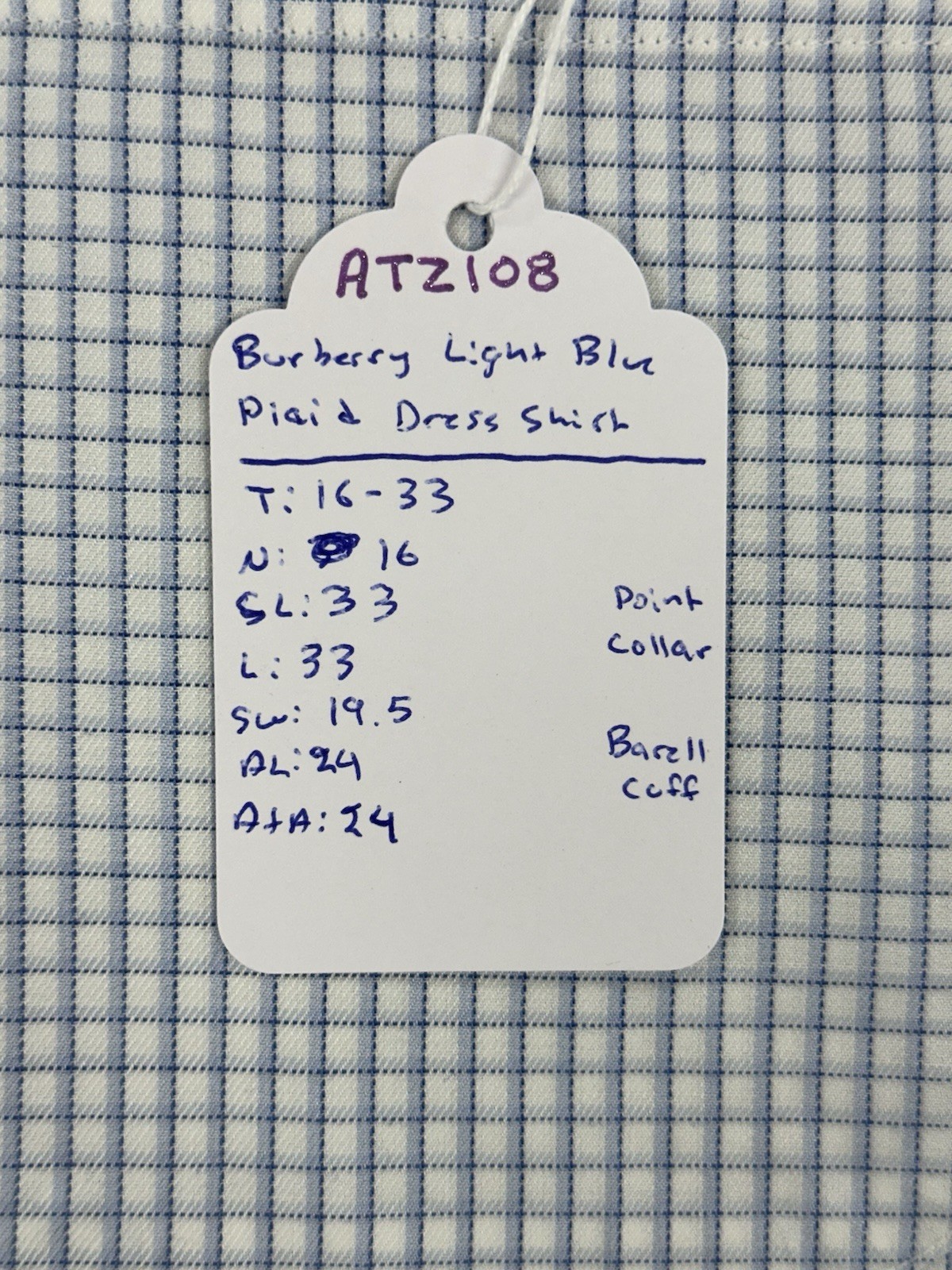 Burberry USA Men's Light Blue Plaid 100 Cotton Dress Shirt 16 33