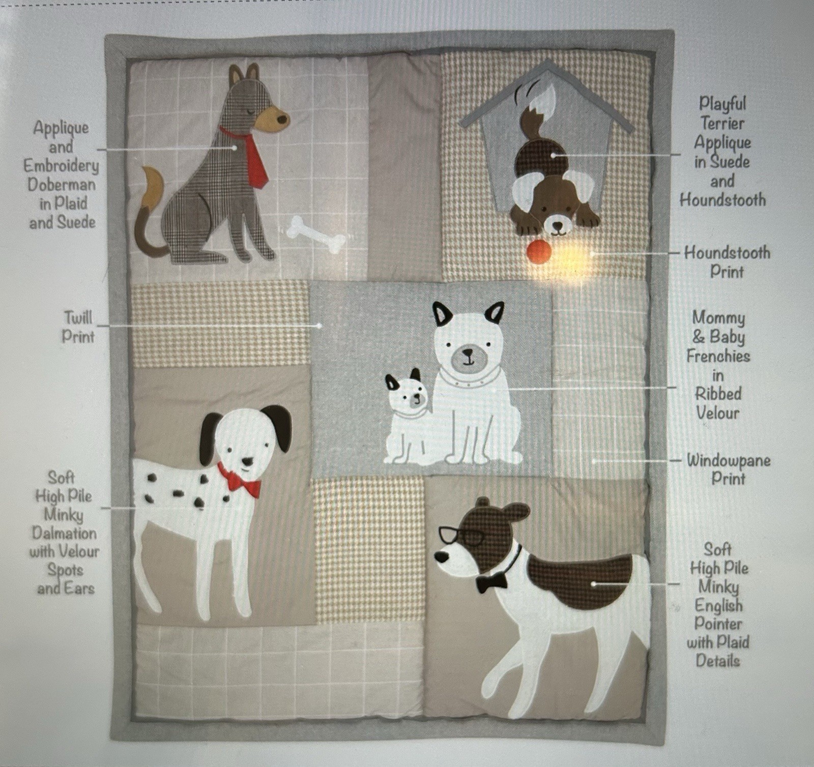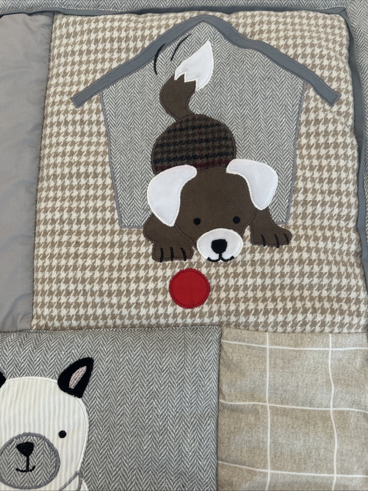 Lambs Ivy Bow Wow Gray Tan Appliqued Dog Puppy Crib Quilt Target Baby Toddler