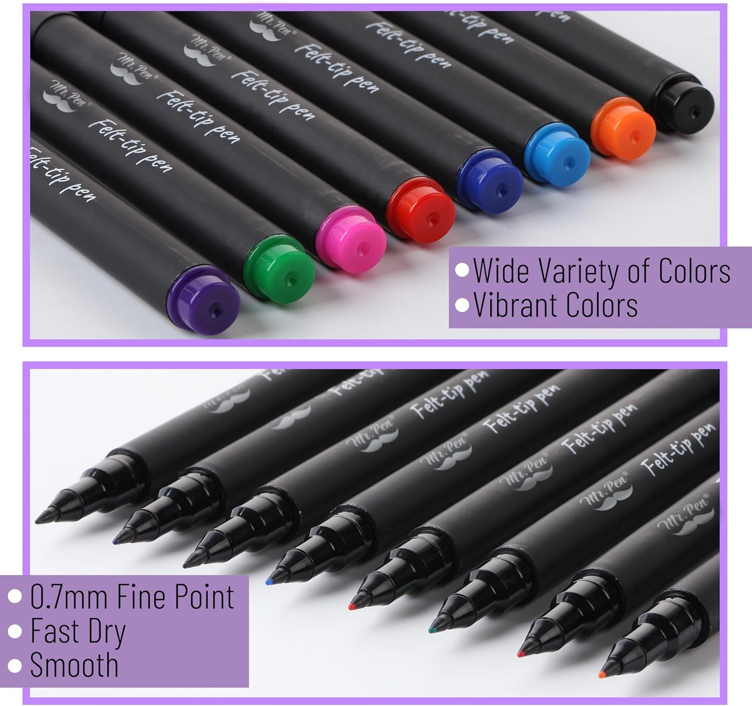Mr. Pen- Colorful Felt Tip Pens, 8 Pack, Fine 1 Count Pack of 8 , Assorted