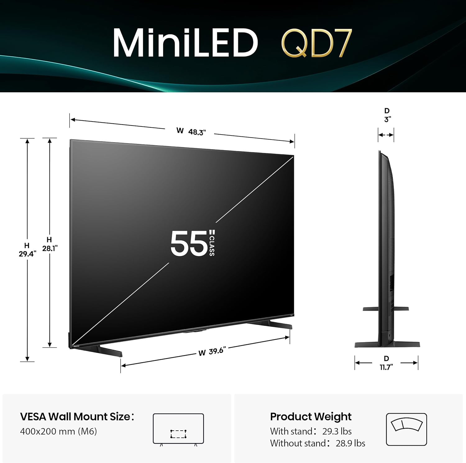 Hisense 55 Class QD7 Series Mini-Led 4K UHD Smart Fire TV 55QD7QF, 2025 Model