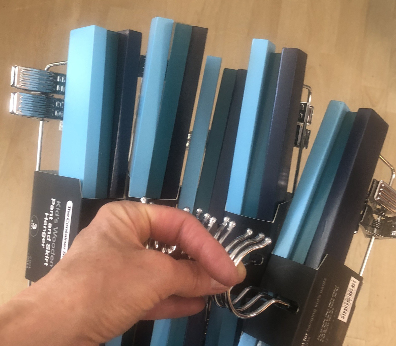 как выглядит The Container Store 3 Pack Wood Pant Skirt Hangers 12x1" Cool Tones Lot of 5 New фото