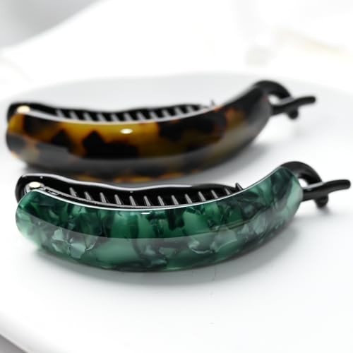 Elegant Banana Hair Clip, Marbled Green Acrylic, Large Size tortise