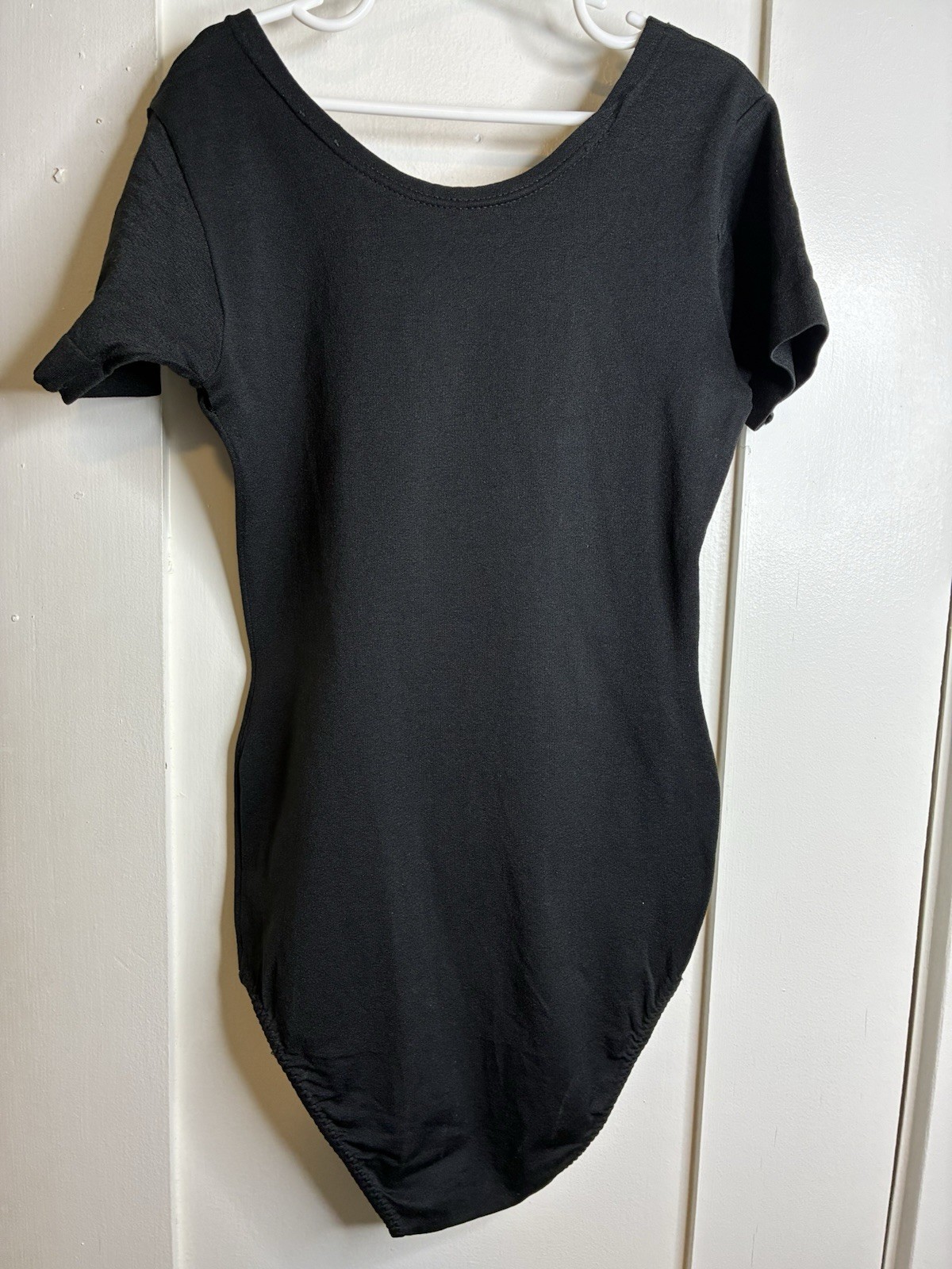 Vintage 1960-70 s Danskin Black Nylon Leotard Body Suit USA Adult Size 12/14