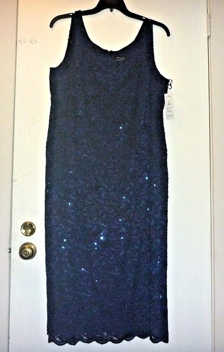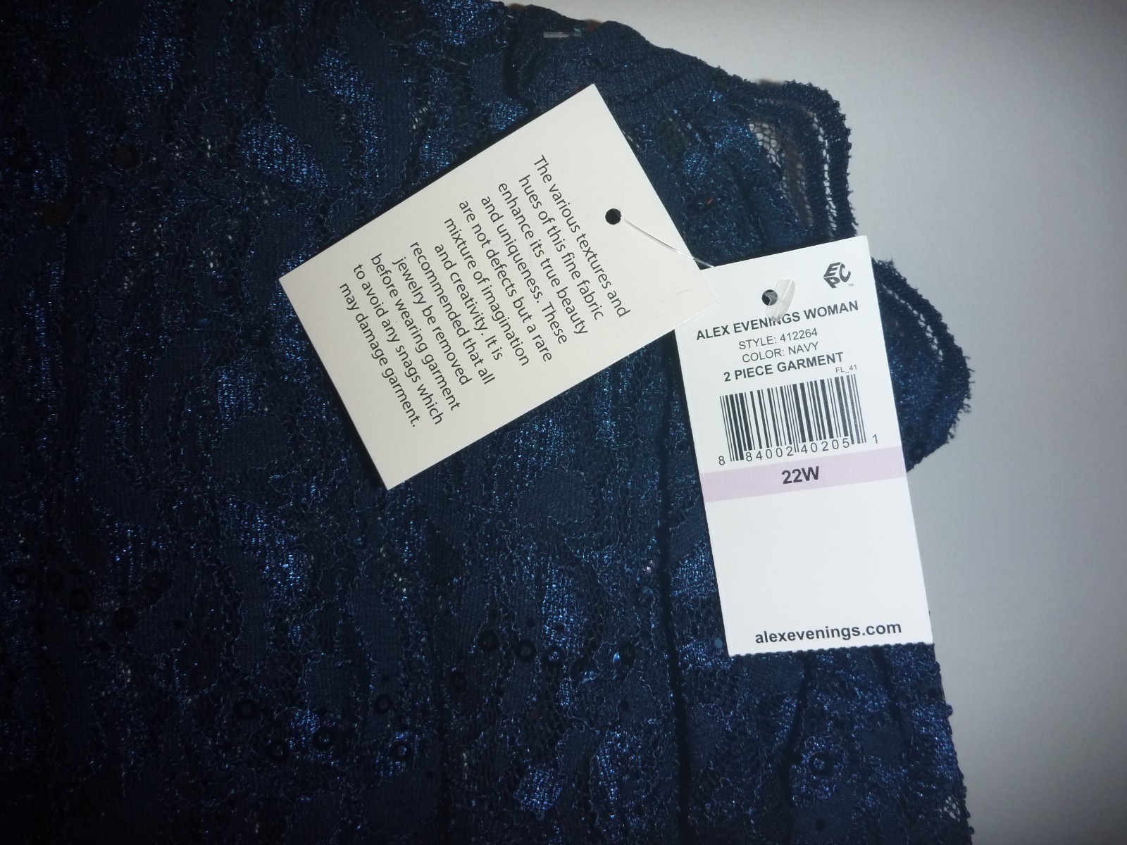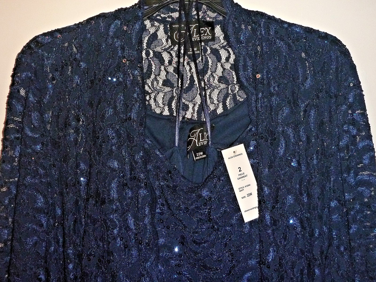 как выглядит Alex Evenings NWT Embellished 2-Pc Sz 22 Navy Blue Lace Jacket Sparkle Dress фото