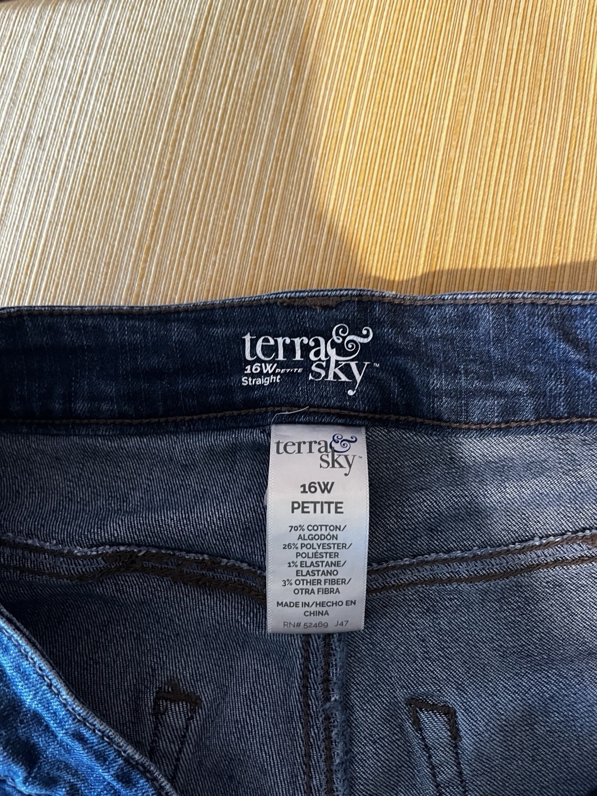 Terra Sky Medium Wash Straight Leg Denim Jeans Women s Size: 16W Petite