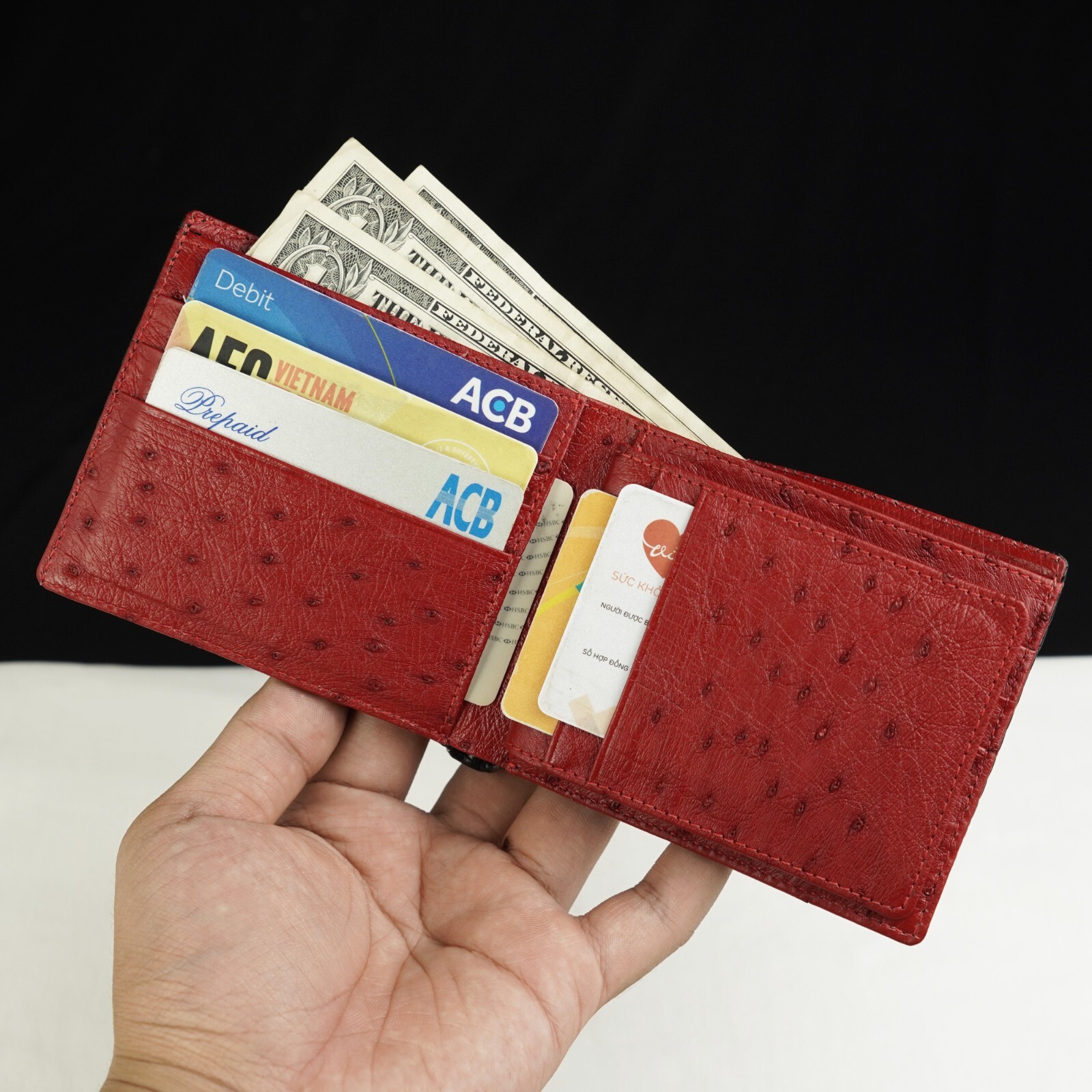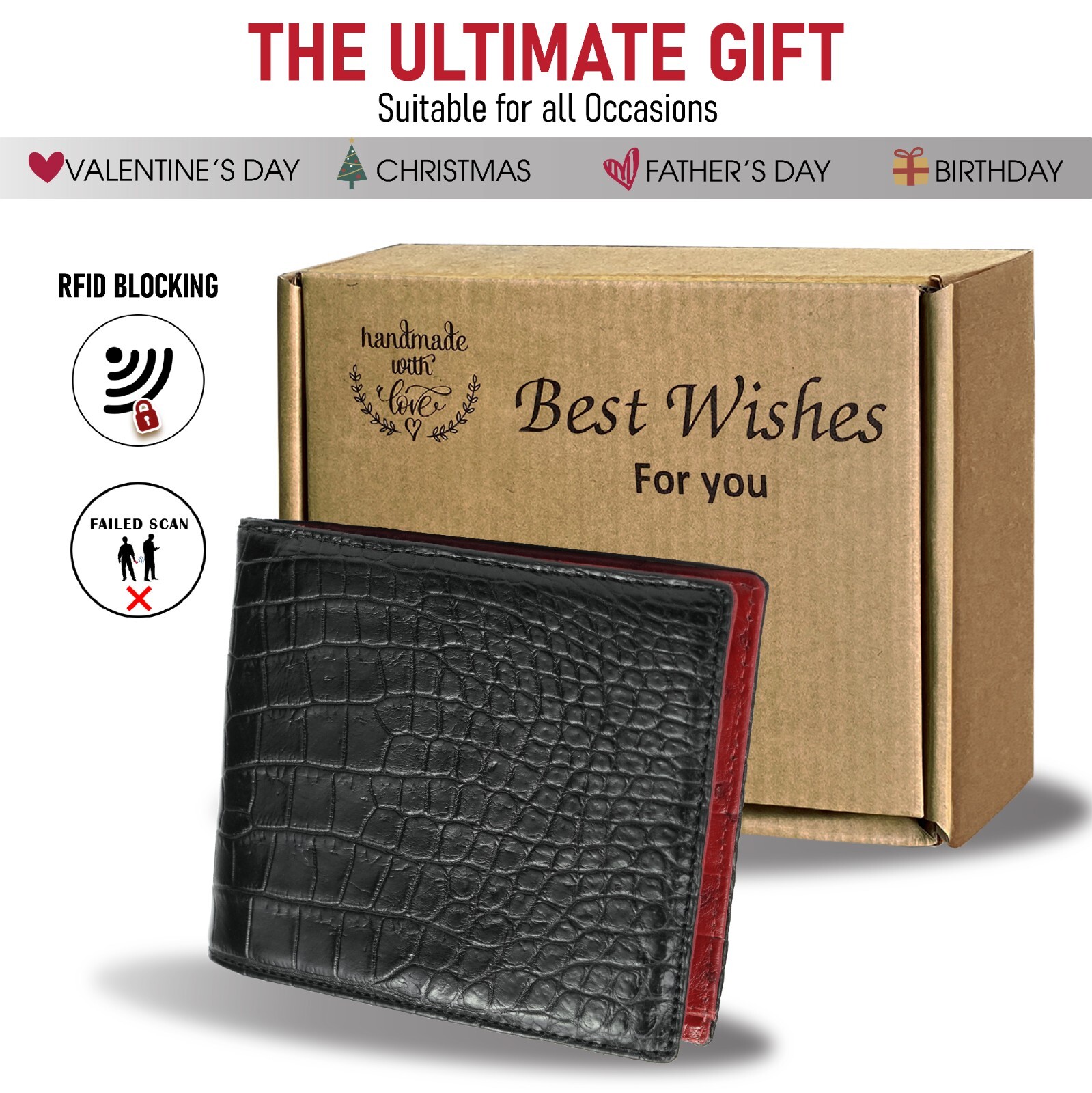 RFID Blocking Black/Red Crocodile/ Ostrich Leather Bifold Wallet Men Skin Wallet