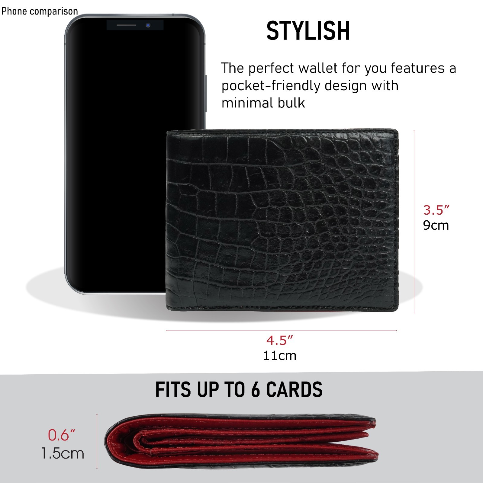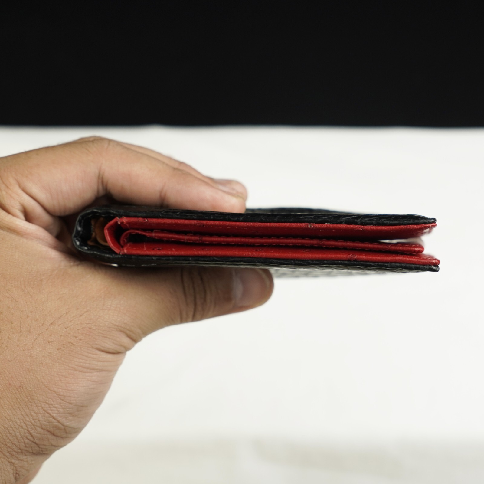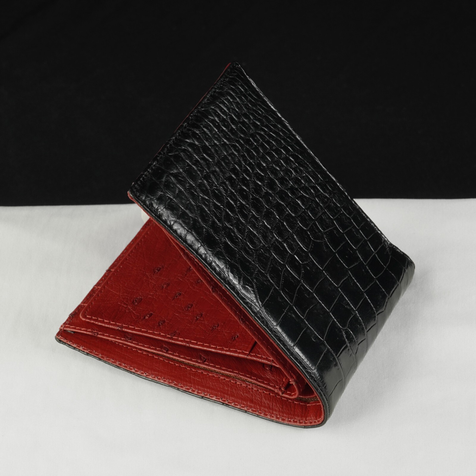 как выглядит RFID Blocking Black/Red Crocodile/ Ostrich Leather Bifold Wallet Men Skin Wallet фото
