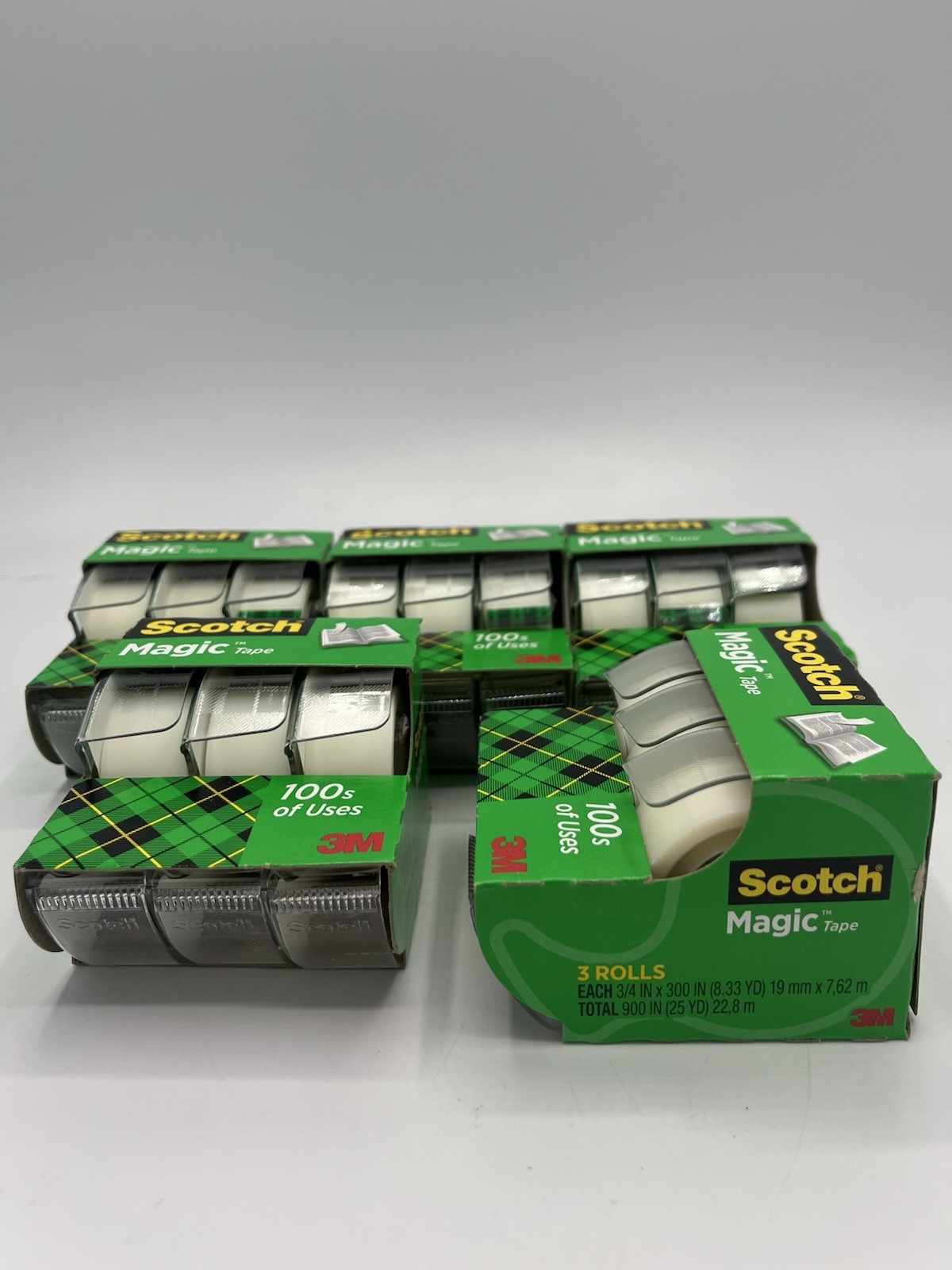 15 ROLLS Scotch Magic Tape LOT of 5 3-packs 3/4 IN x 300 IN 8.33 YD Total 25YD