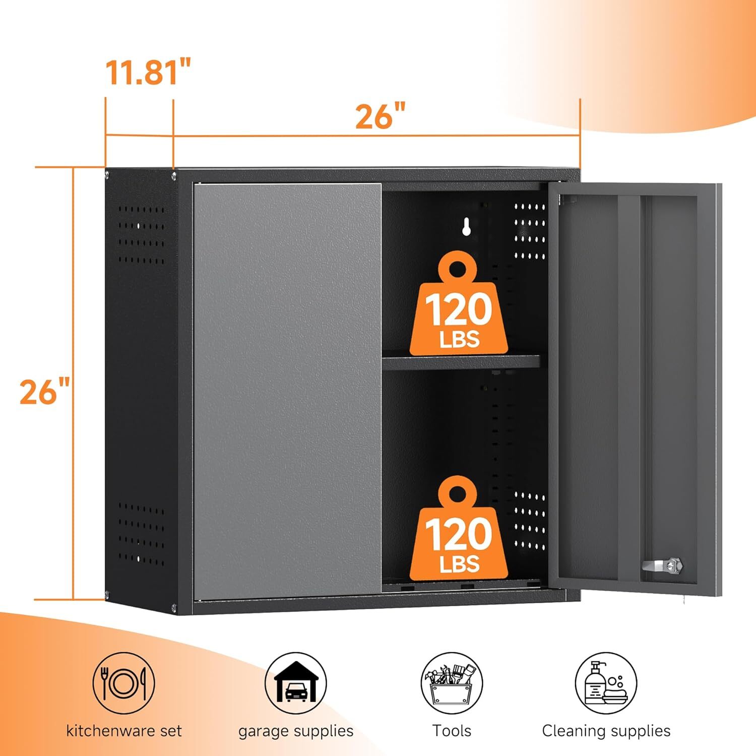 Garage Wall Cabinet with Locking Doors Shelf Metal Wall Cabinet Tool Organizer