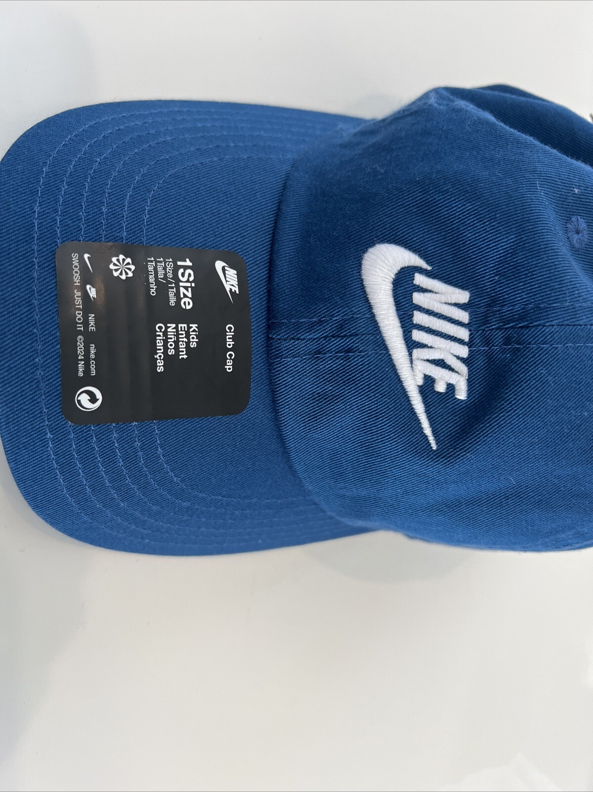 Nike Club Kids Unstructured Futura Wash Cap Adjustable Blue White Hat FB5063010