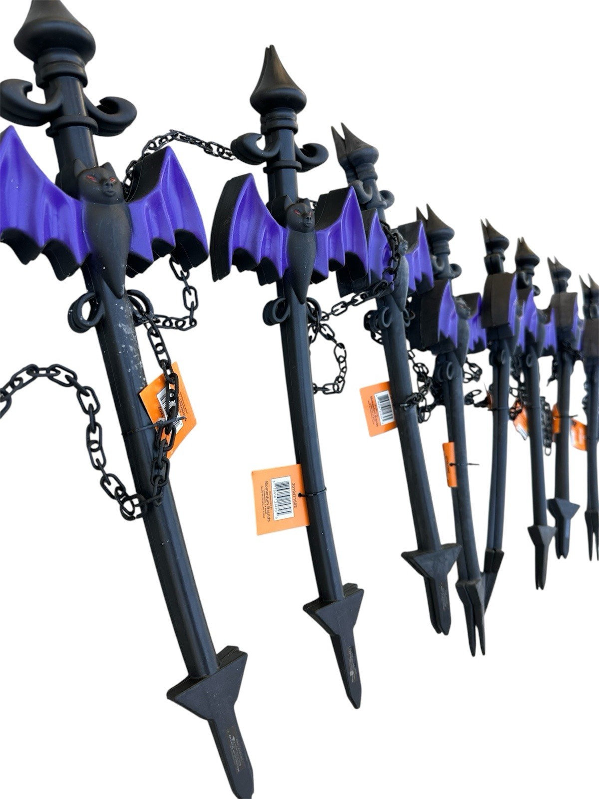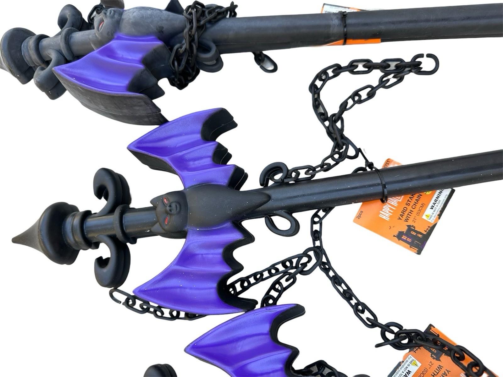Lot Of 10 Halloween Yard Stakes 12 Tall Purple Bats With Chains Pathway Markers