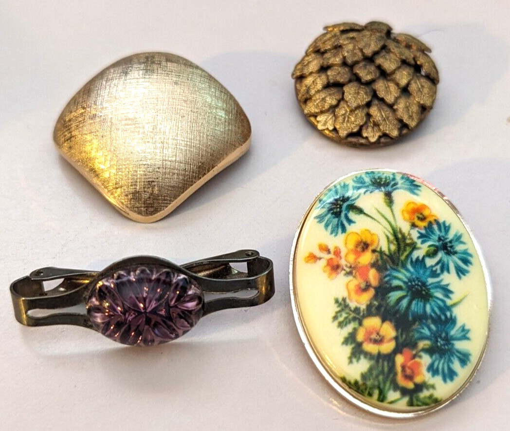 как выглядит 4 Scarf Pins Clasps from a Vintage Jewelry Box - must see up close фото