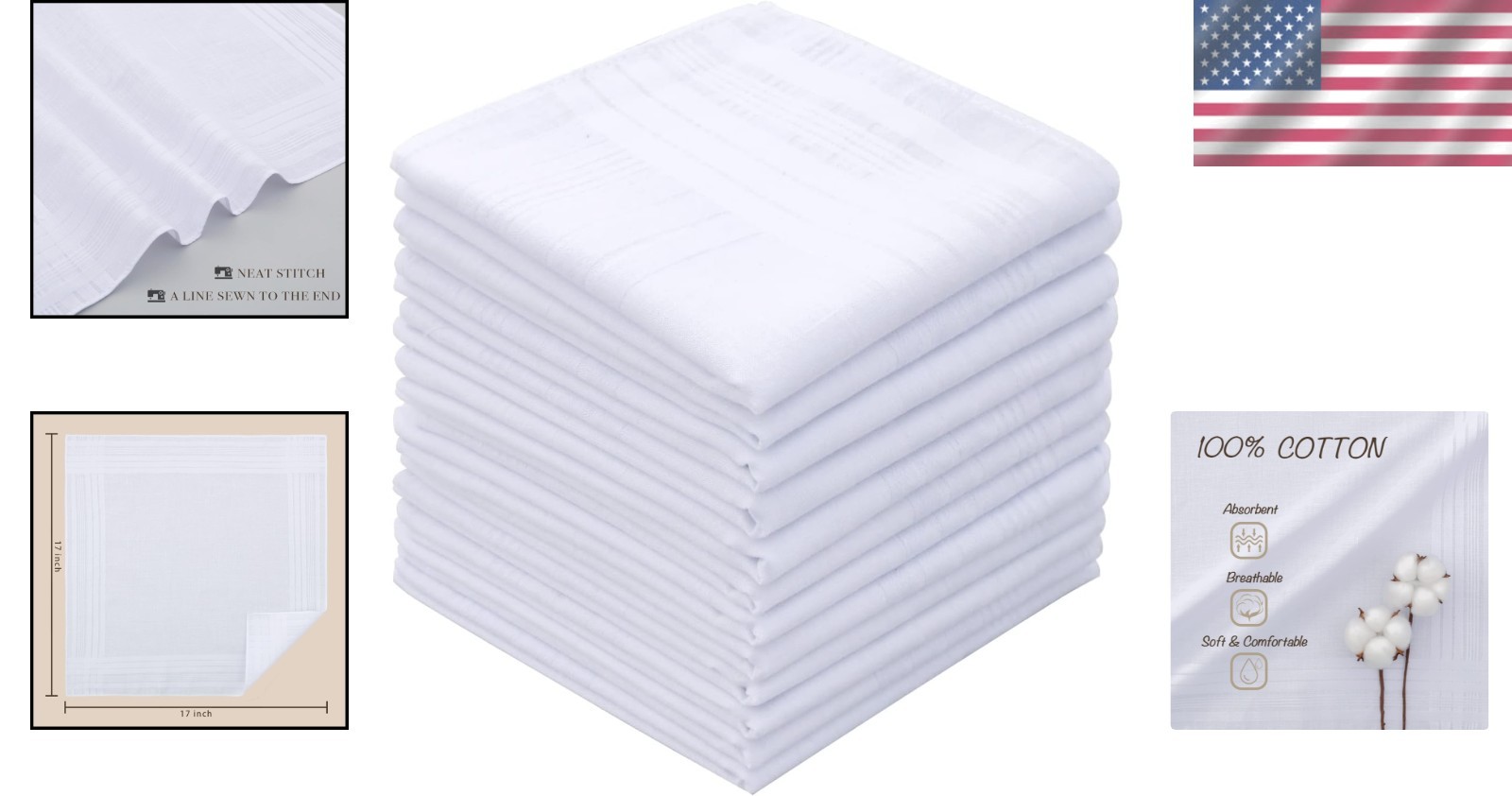 100 Cotton Handkerchiefs 17x17 - Vintage White Hankies Set of 12
