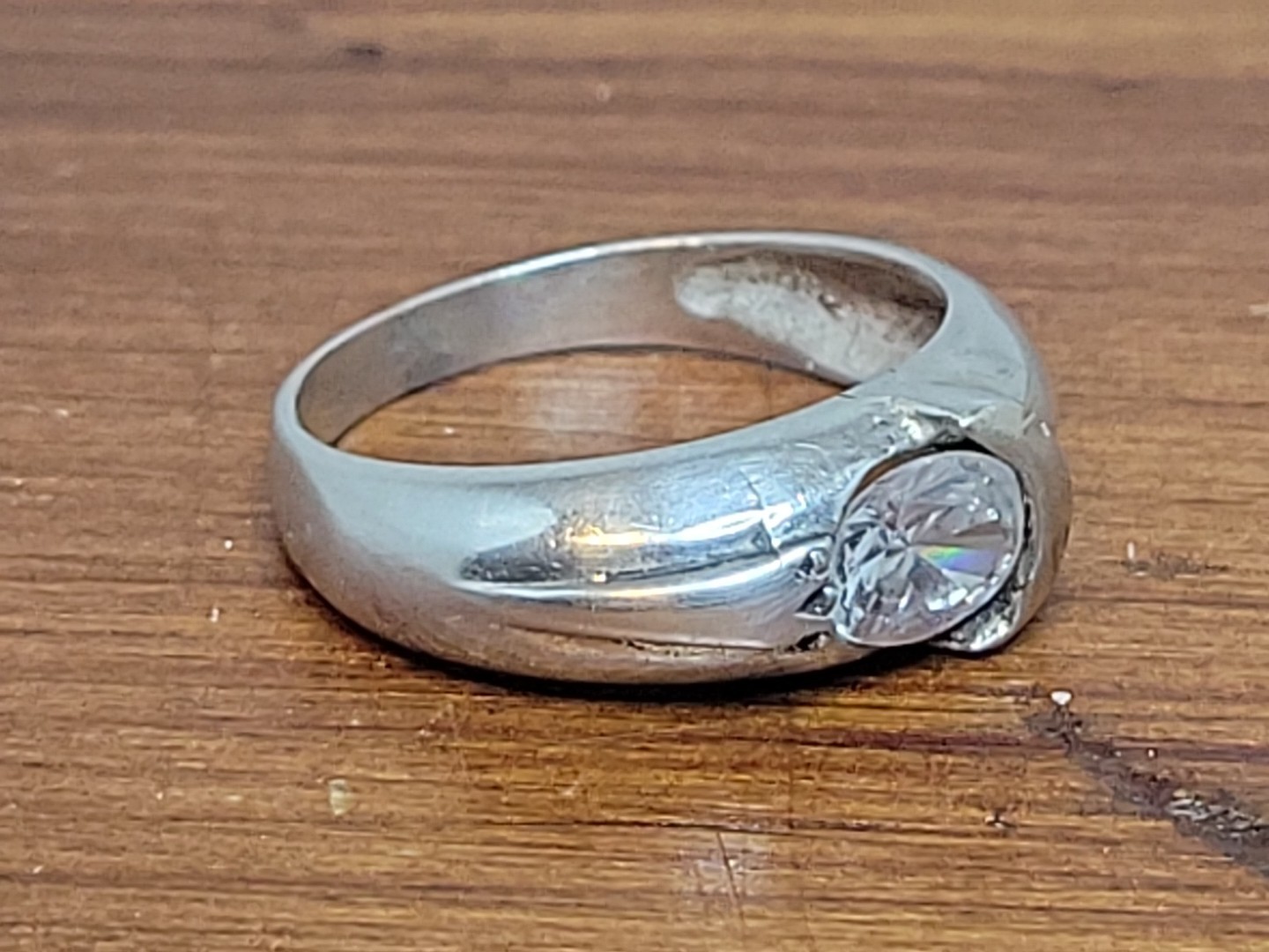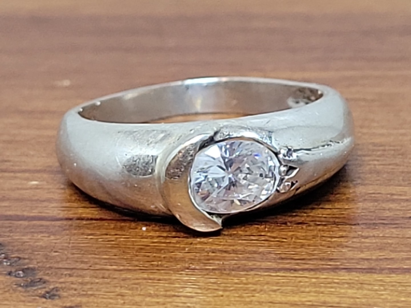 как выглядит Vintage Designer 925 Sterling Silver Oval CZ Solitaire Band Ring Size 7-3/4 фото