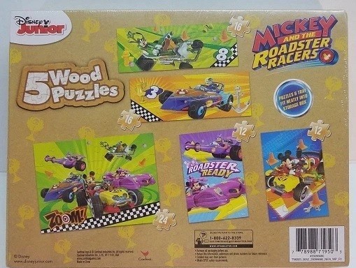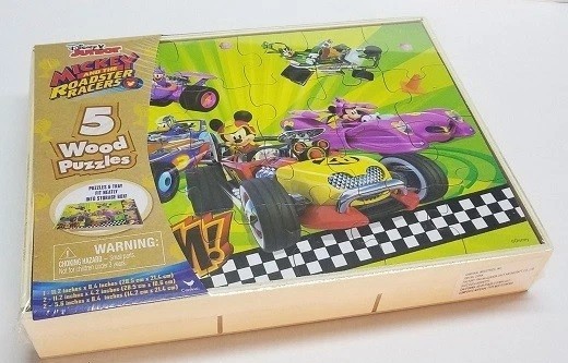 DISNEY MICKEY ROADSTER RACERS 5pk Wood Puzzles Storage Box Educational Puzzle