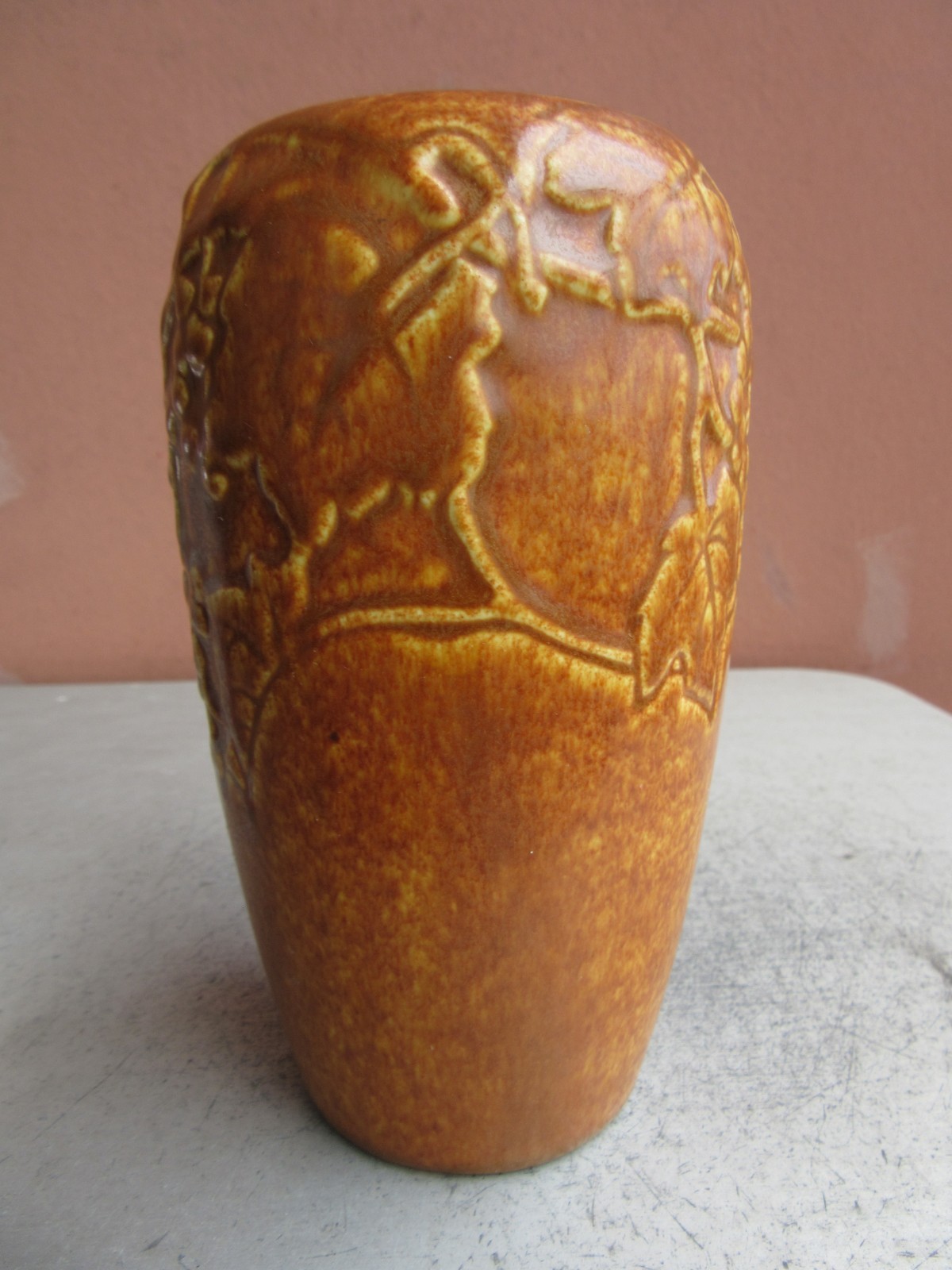 как выглядит MINT Rookwood Production Rust Orange 6 1/4" Grapes Vase 1930