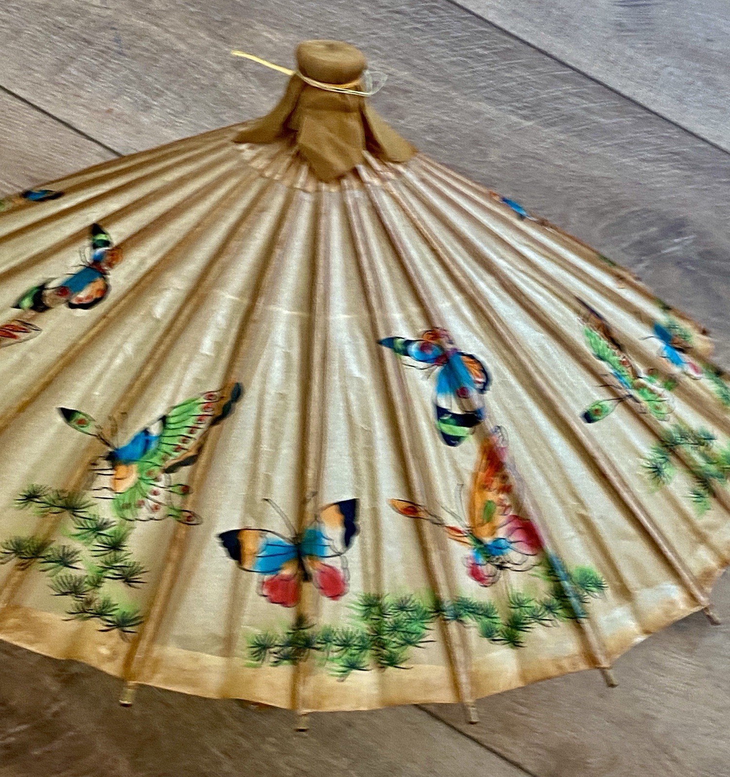 Vintage Asian paper umbrella decorate it with colorful butterflies