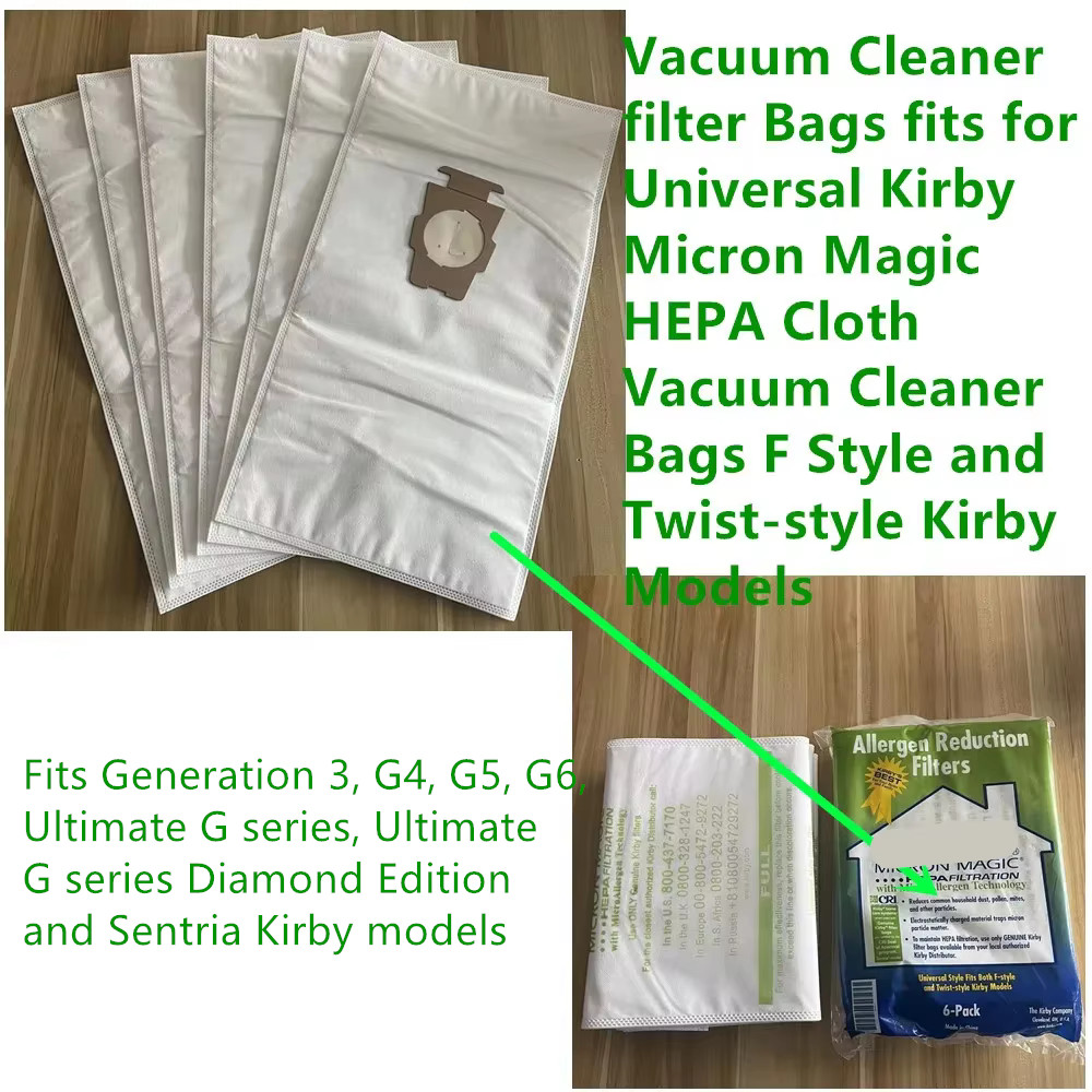 For 6 KIRBY VACUUM BAGS Sentria UNIVERSAL F Style MICRON MAGIC Hepa White Cloth