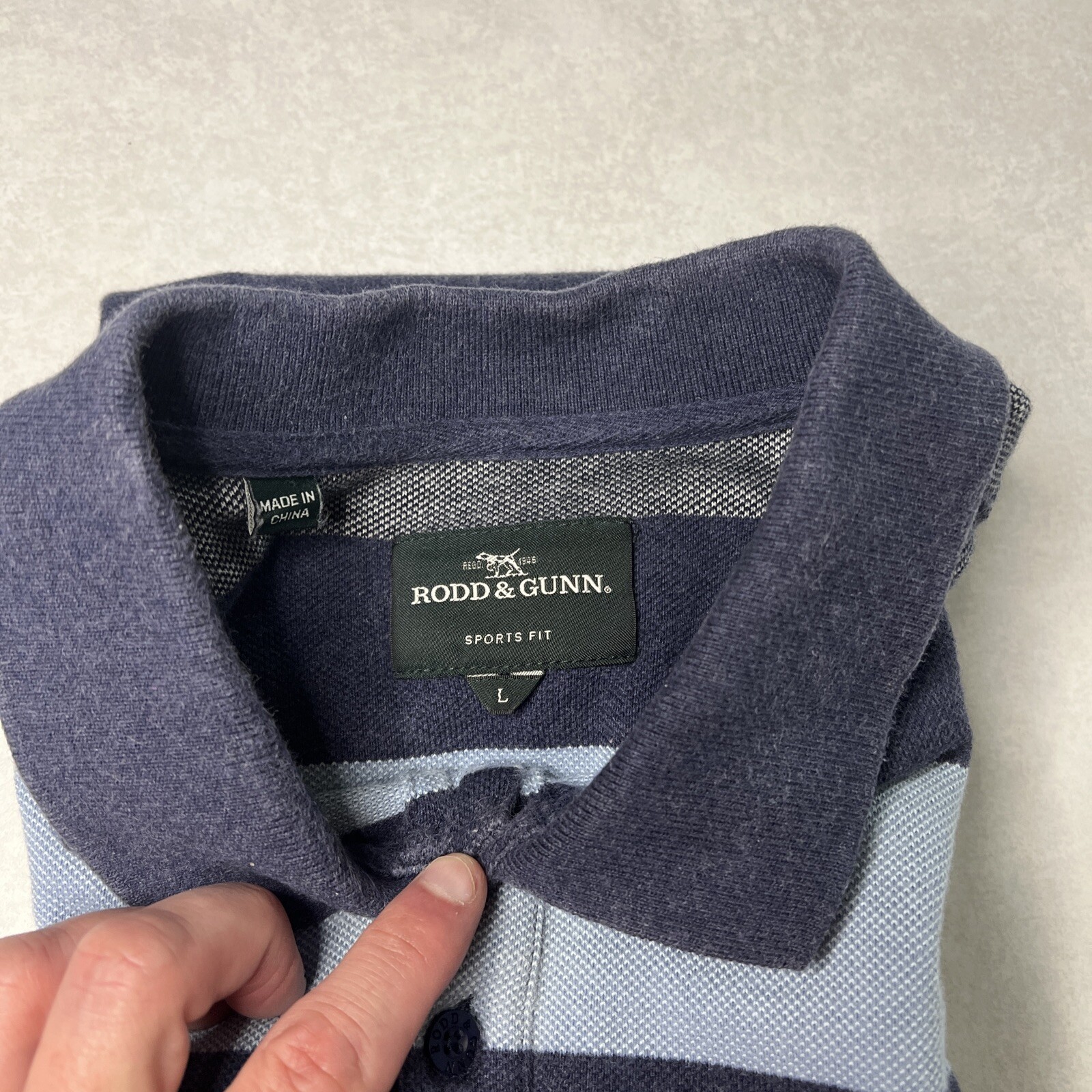 как выглядит Mens Polo Shirt Large Blue Striped Golf Sports Fit, Short Sleeve Rodd Gunn фото