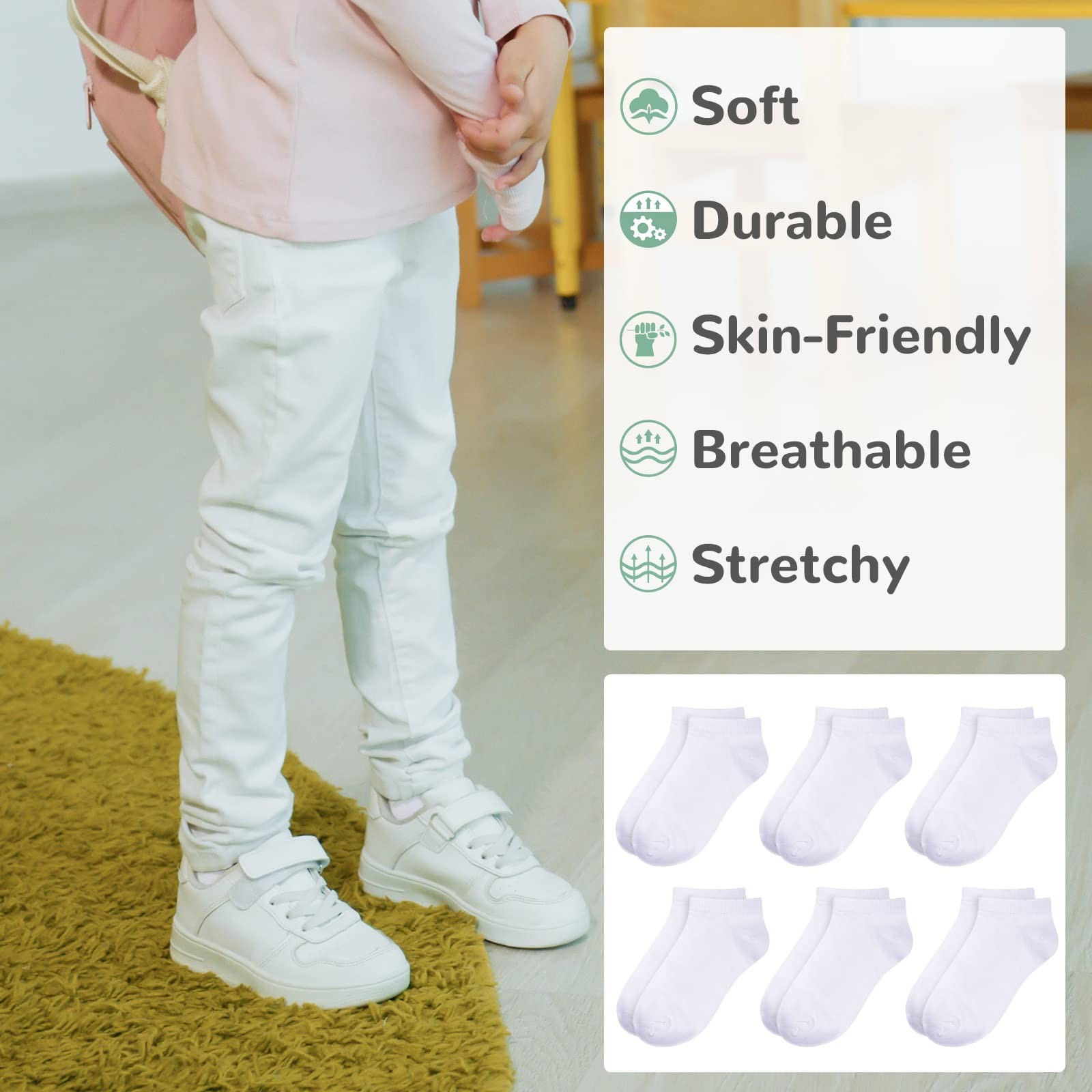25 Pack Kids Low Cut Ankle Socks Boy Girl Athletic Socks 9-12 Years White