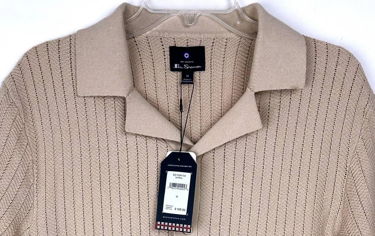 как выглядит NWT 109 Ben Sherman Mens Textured Knit Herringbone Shirt/Sweater Beige Size M фото