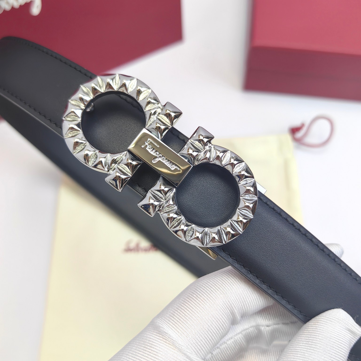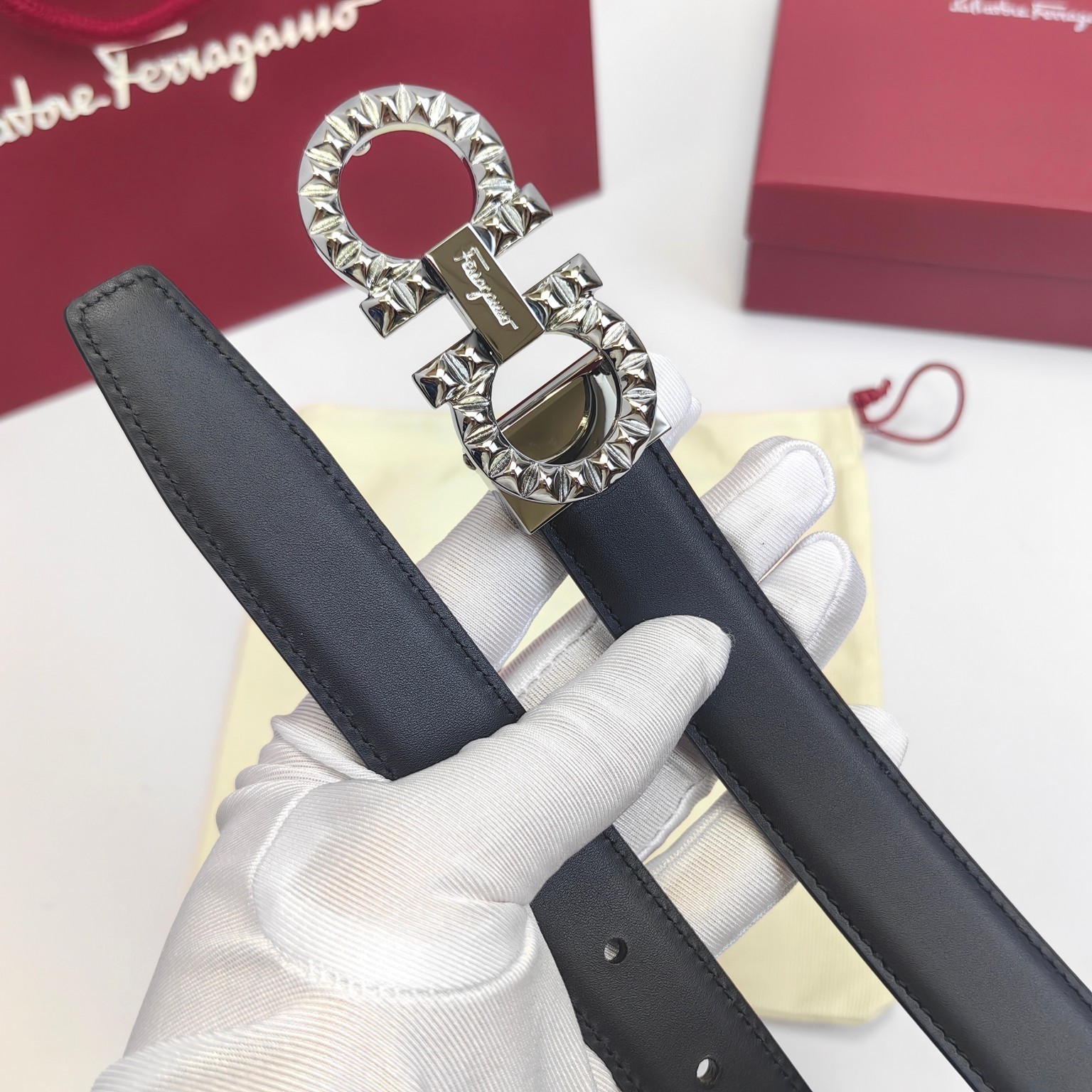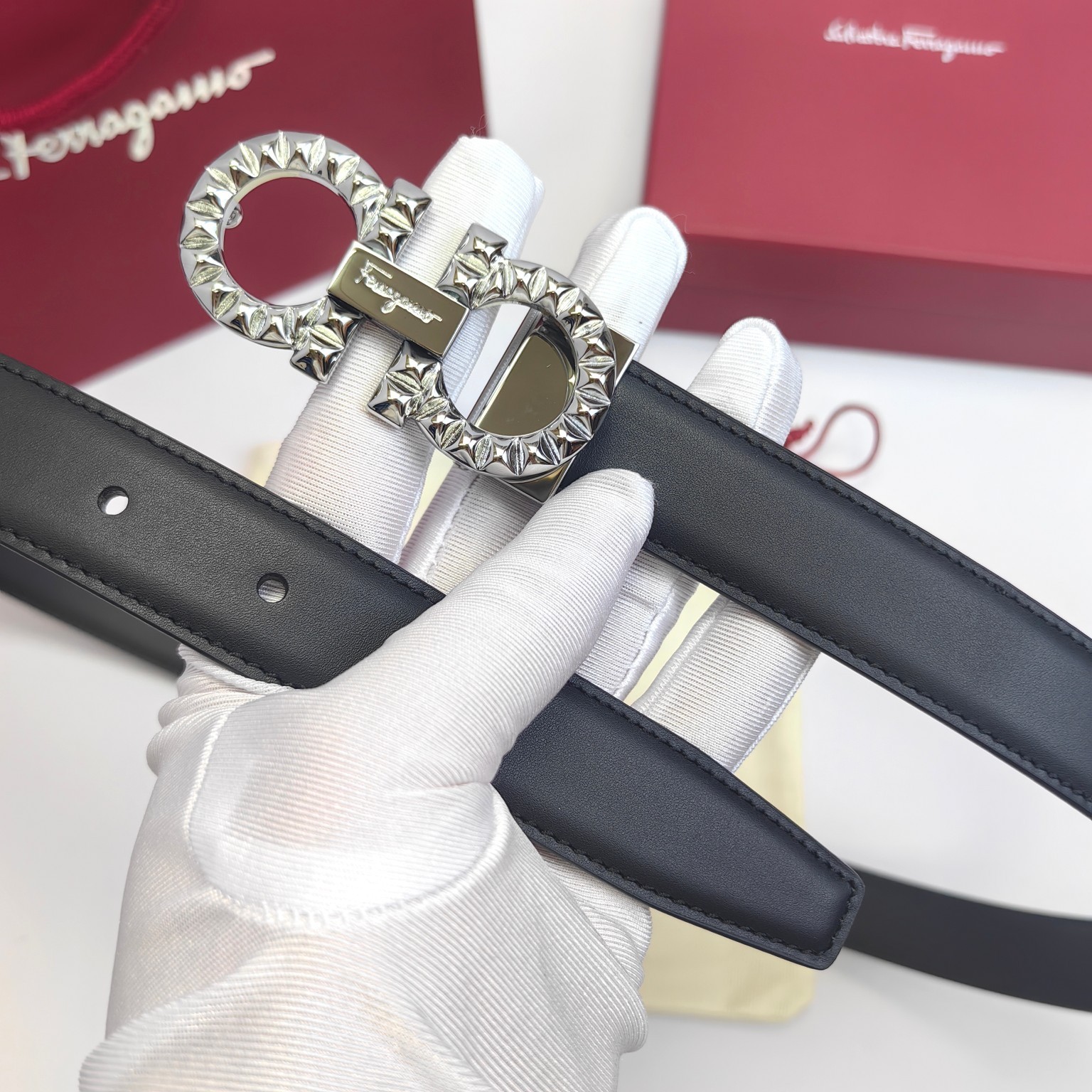 как выглядит Ferragamo womens belt 2.5cm/0.98in authentic Gancini Black фото