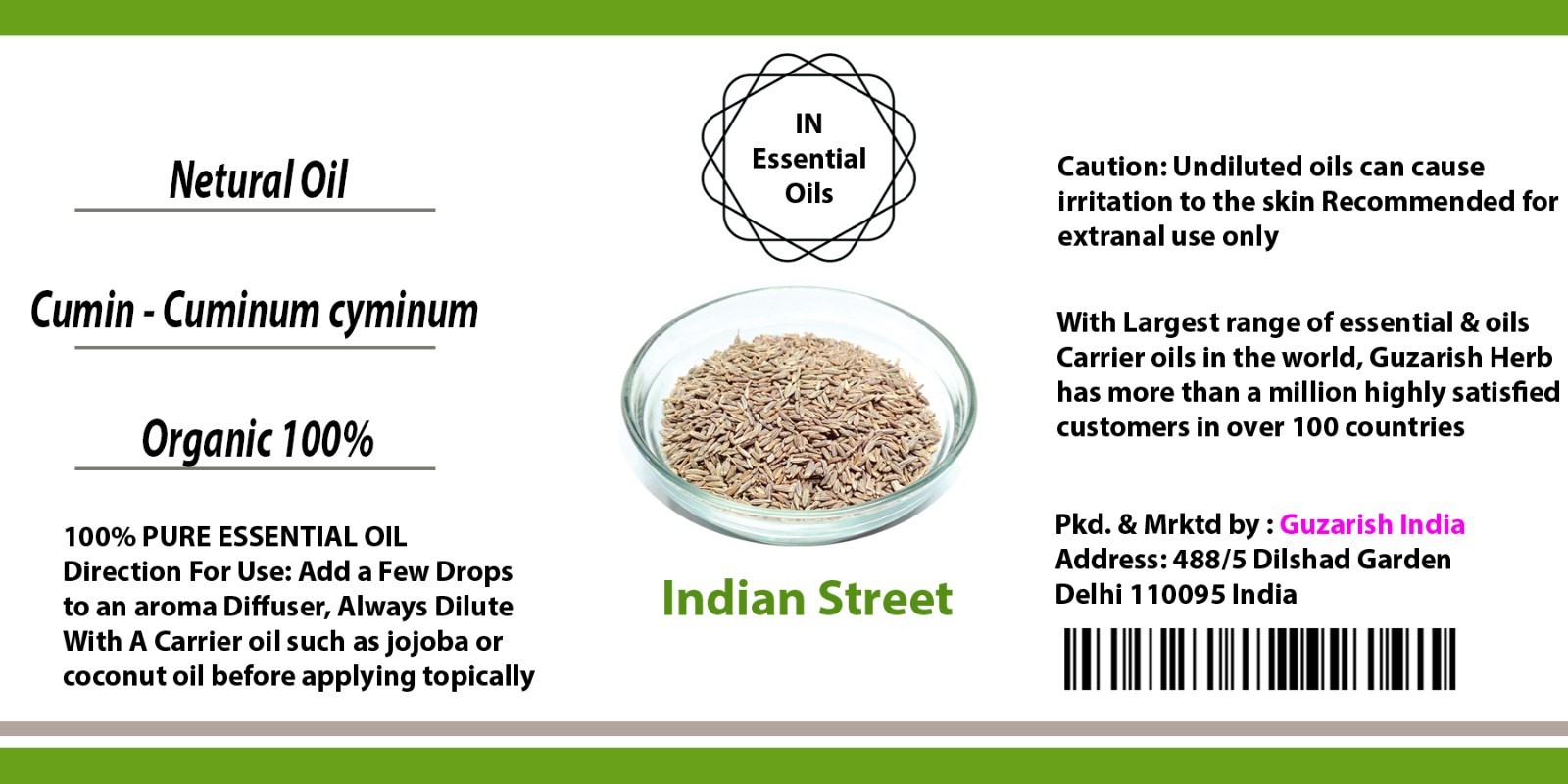 INDIAN STREET CUMIN PURE THERAPEUTIC GRADE ESSENTIAL OIL 3ML TO 100ML