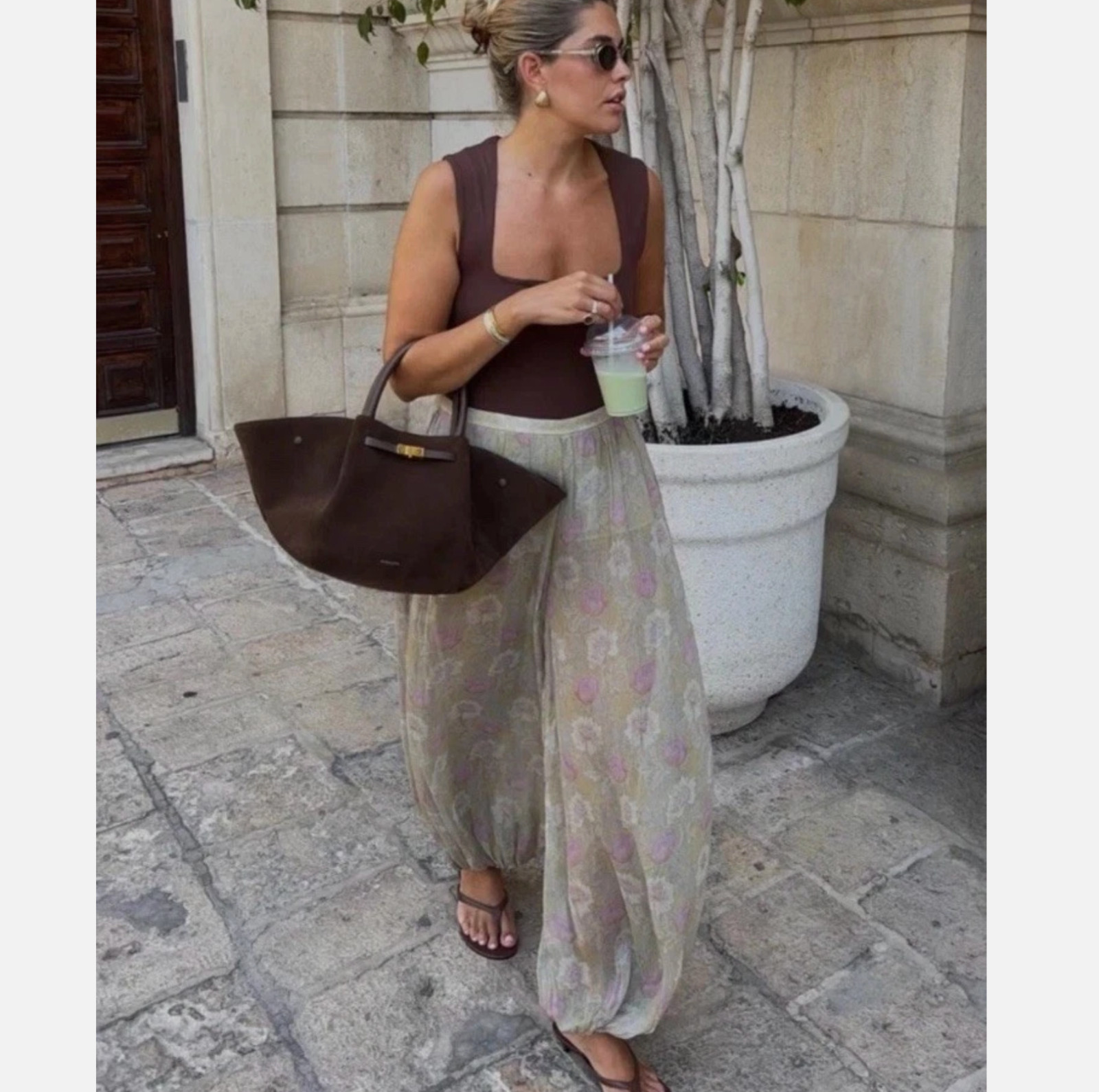 ZARA NWT 129 WOMAN SS25 ZW COLLECTION FLORAL BALLOON PANT MULTICOLORED 3285/007