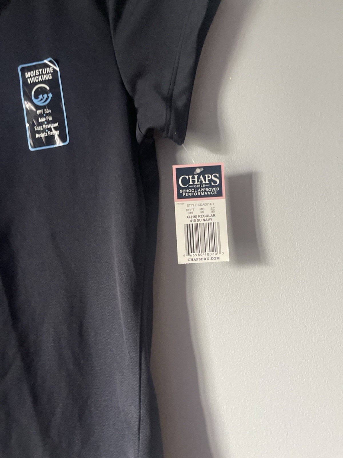 как выглядит Chaps Polo Kids Navy Moisture Wick Uniform Shirt 16 NWT фото