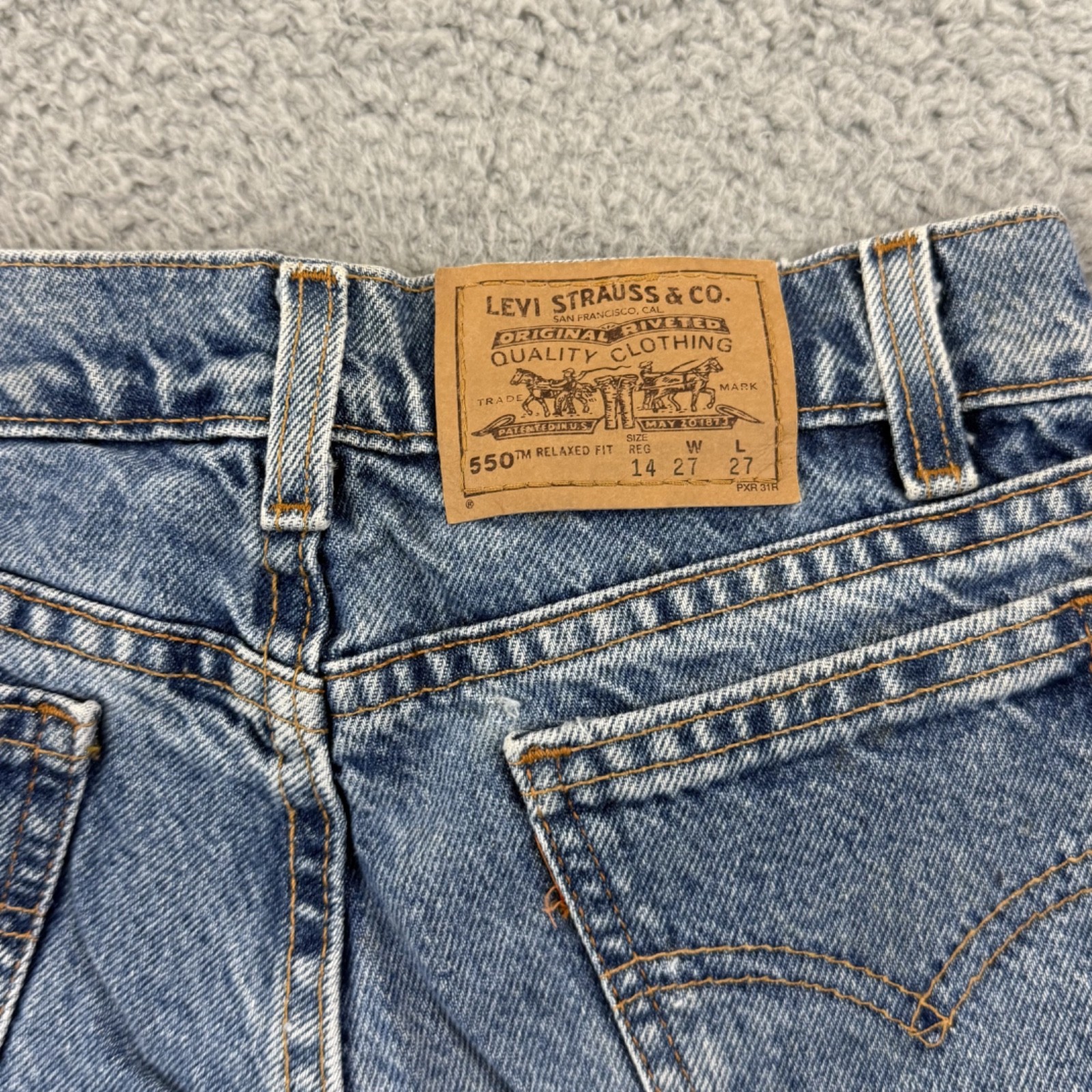 как выглядит Vintage Levi s 550 Jeans Boys 14 Blue Relaxed Fit 24x27 Orange Tab 90s Snap USA фото