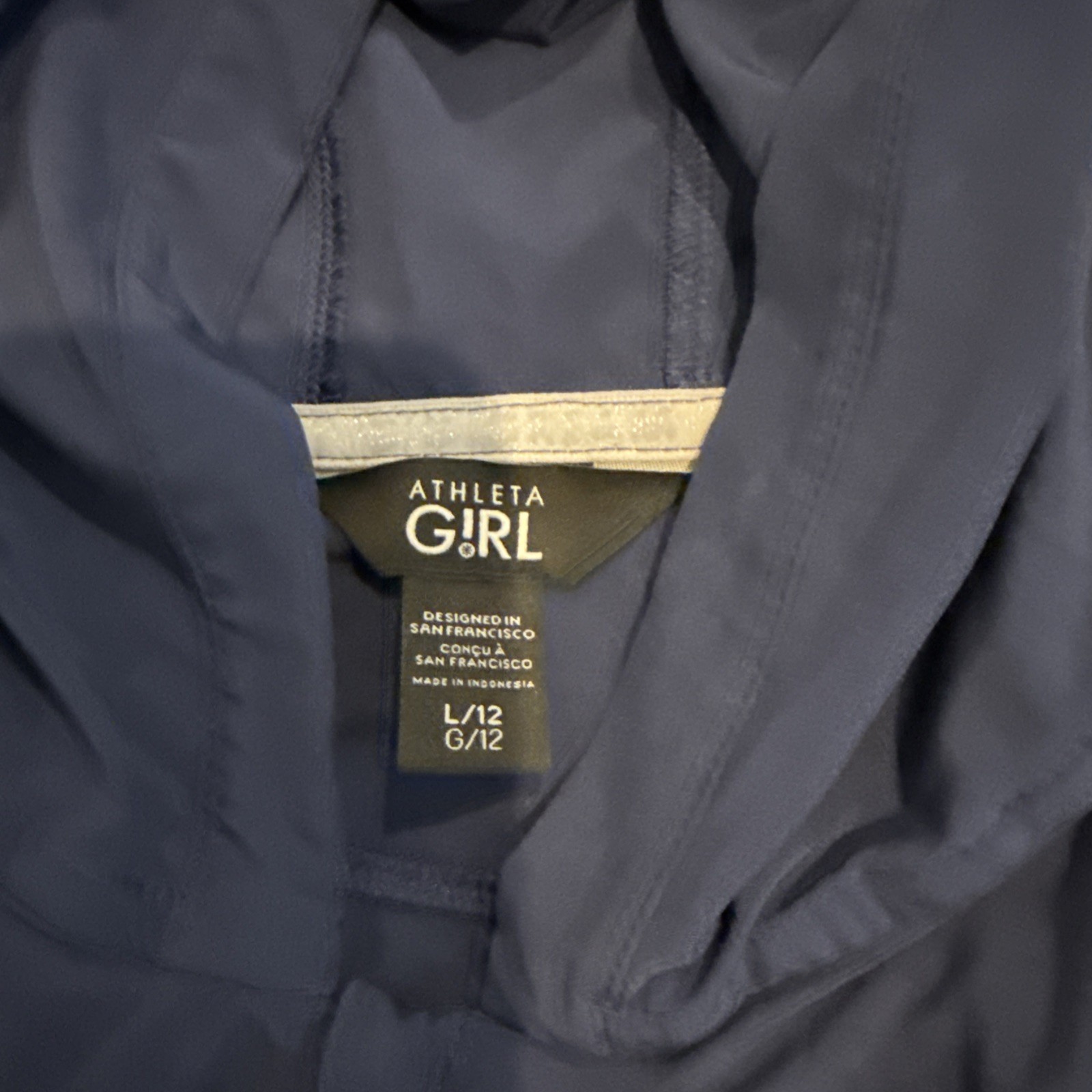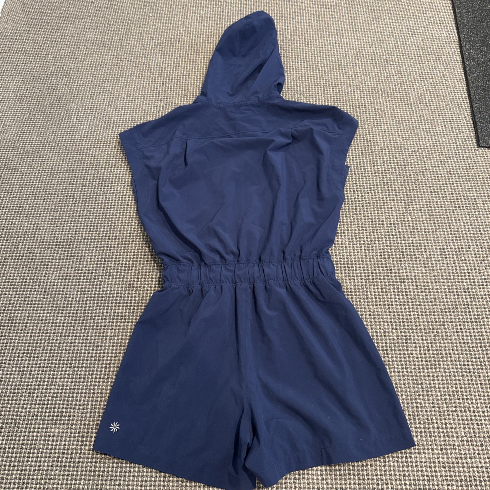 как выглядит Athleta Girl Navy Blue Hooded Romper L/12 PolyesterSpandex Pockets On the Go фото